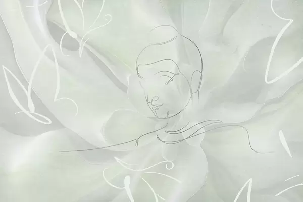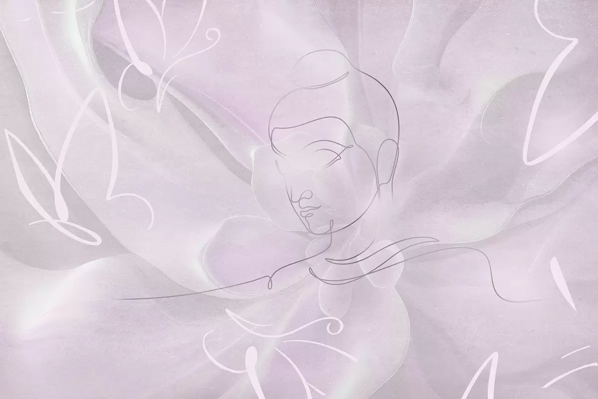 Fototapet Květinová abstrakce s kresbou Buddhy, růžové barvy w04004v2
