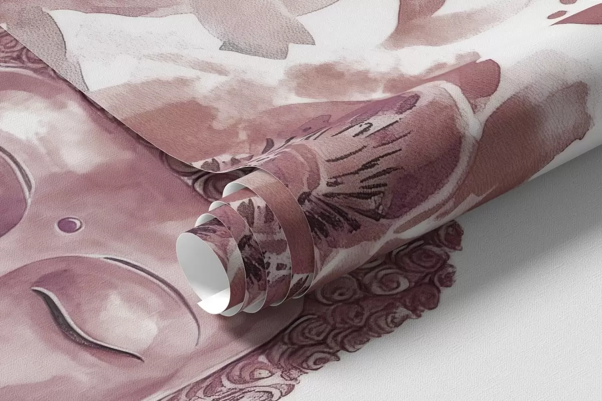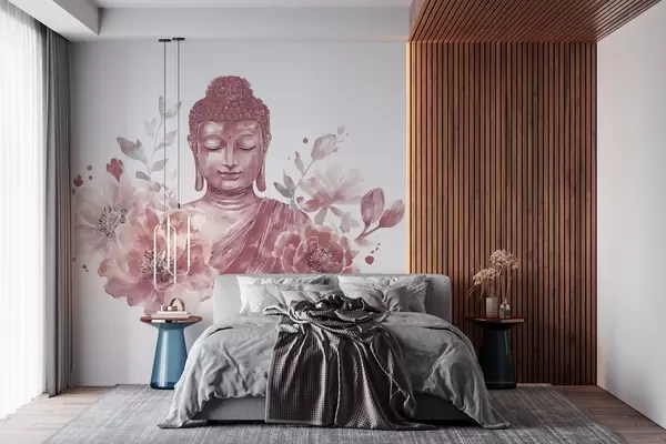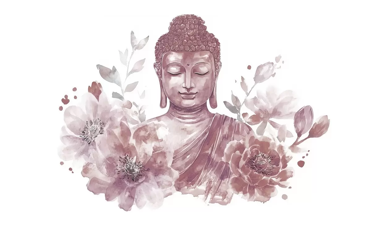 Fototapety Akvarel Buddha s květinami, duchovní, vínová barevná paleta Č. w04005v2