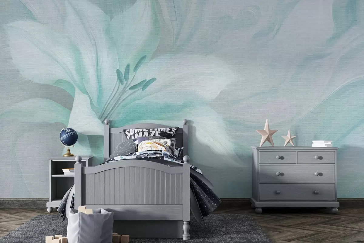 Fototapety Lilie květ tekutiny abstrakce, květinové, akvamarínové barvy Č. w04006v3