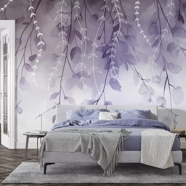 Fototapet Větve s listy v akvarelovém stylu, přírodní fialové barvy w04007v2