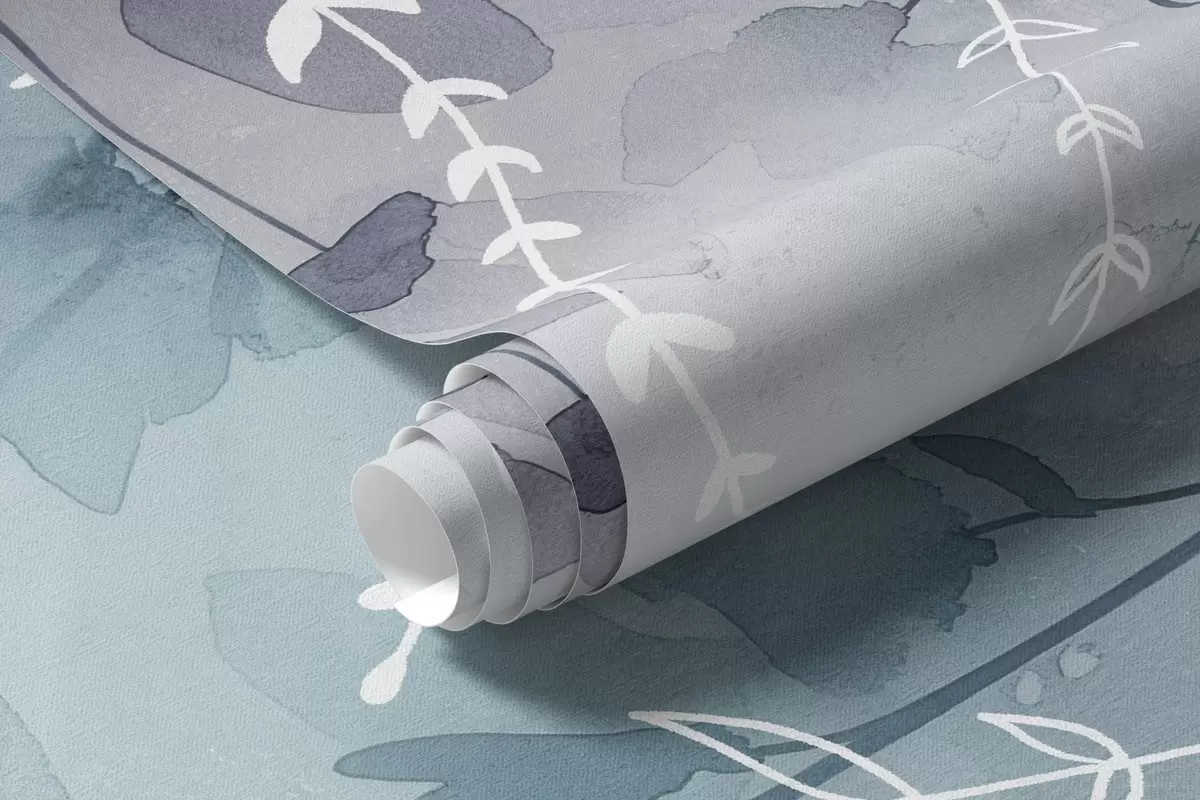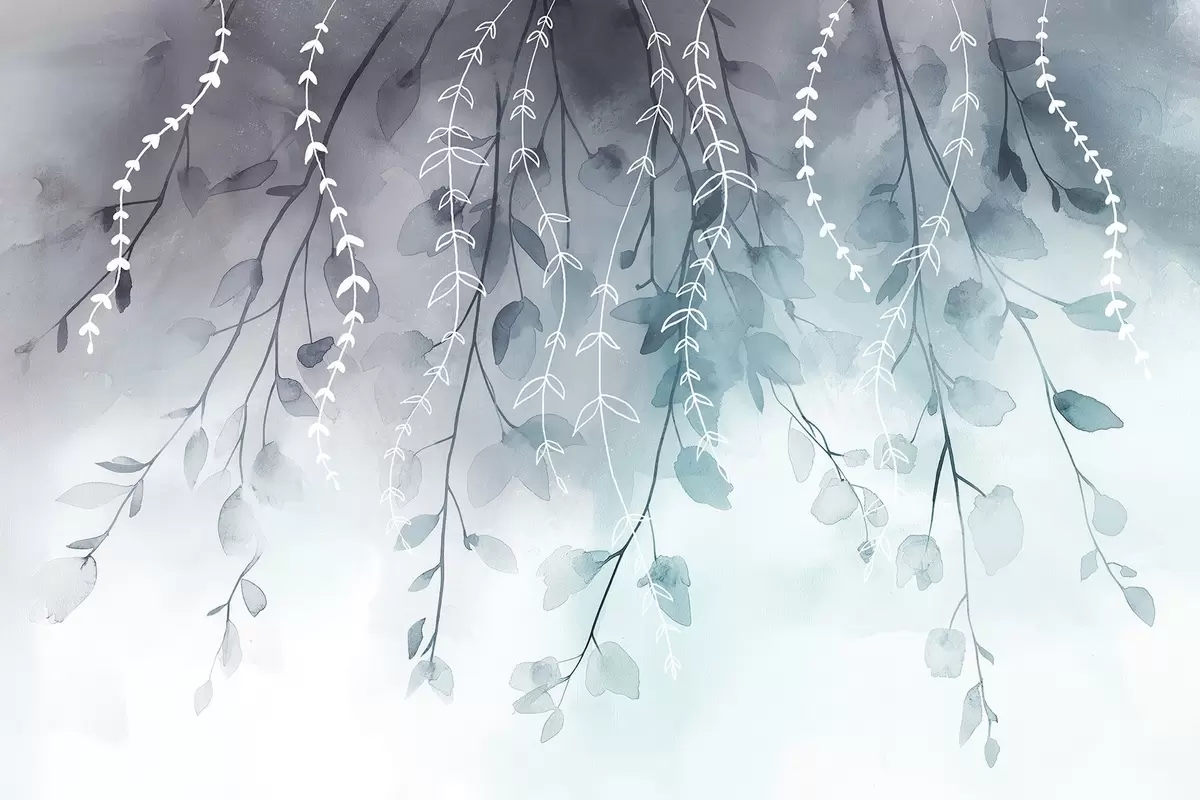 Fototapet Větve s listy v akvarelovém stylu, přírodní akvamarínové barvy w04007v3