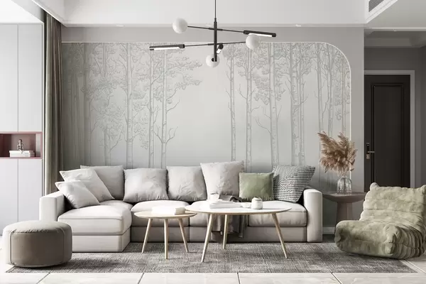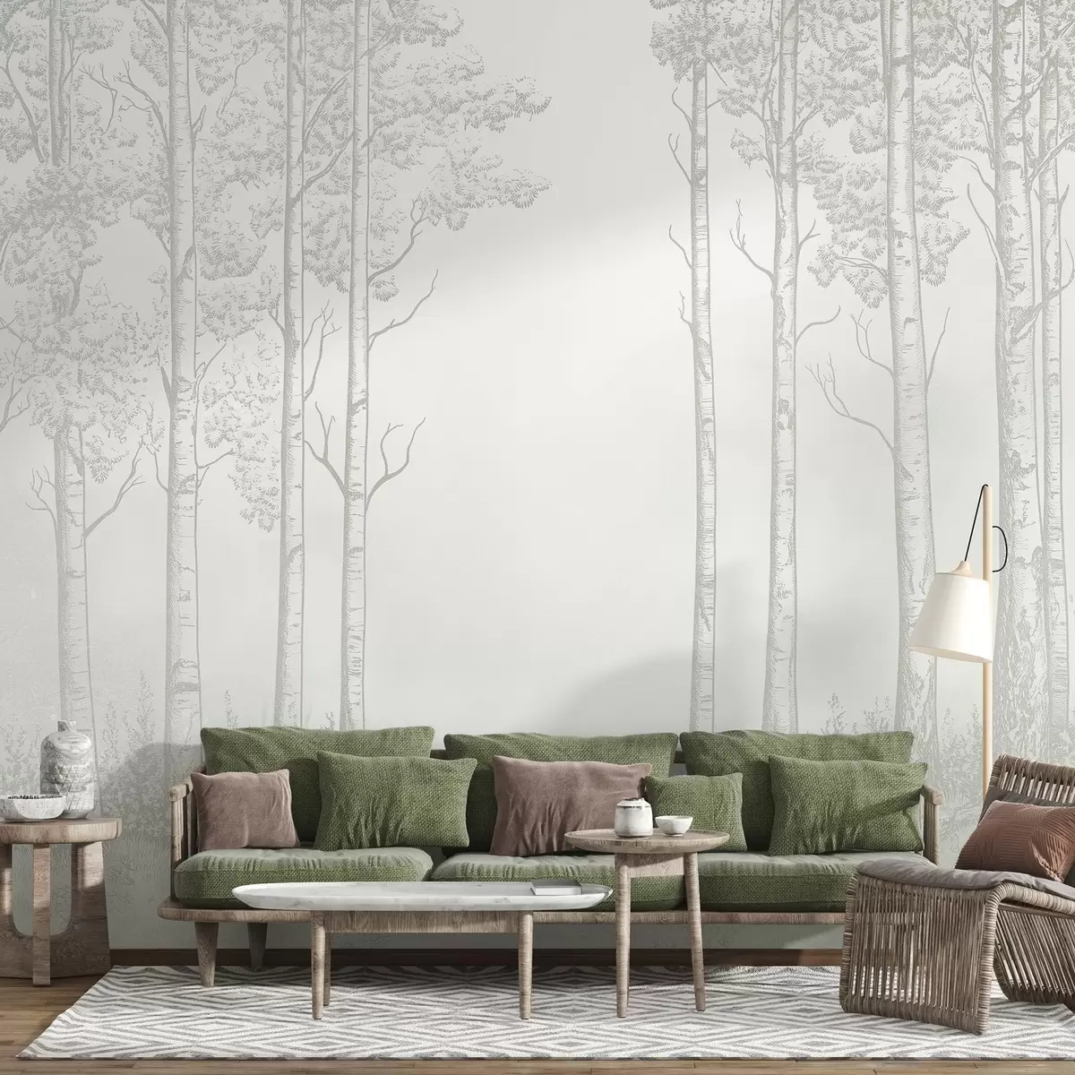 Fototapety Les s břízami, minimalismus, příroda, paleta zelených barev Č. w04009v1