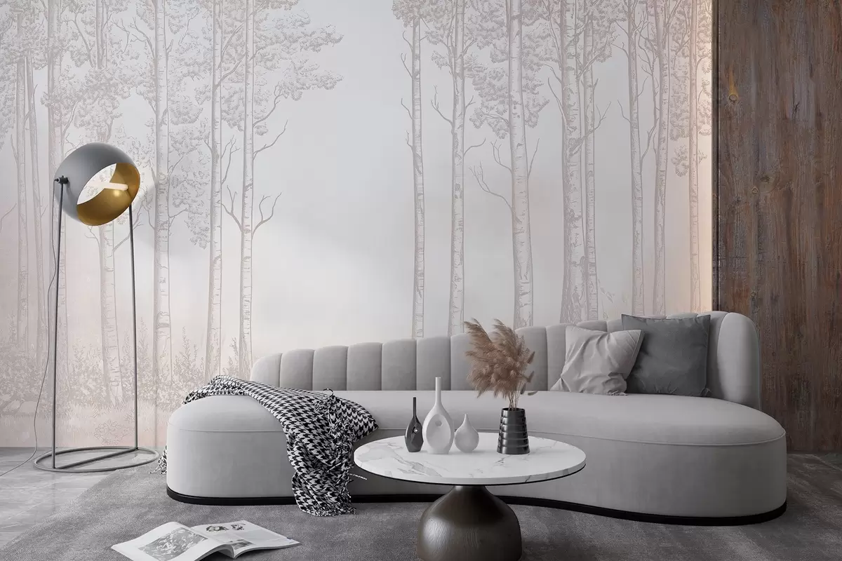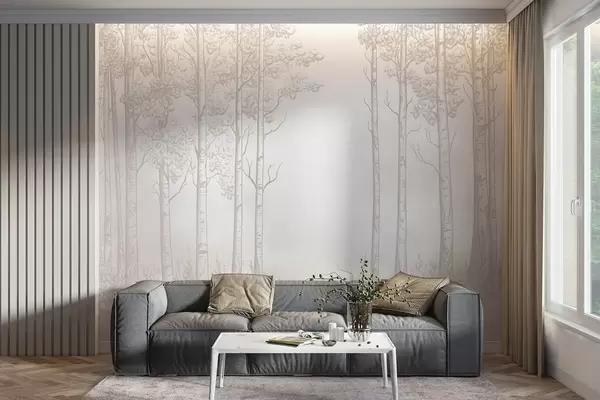 Fototapety Les s břízami, minimalismus, příroda, béžová paleta barev Č. w04009v3