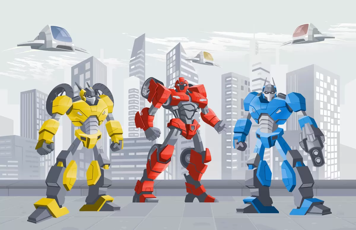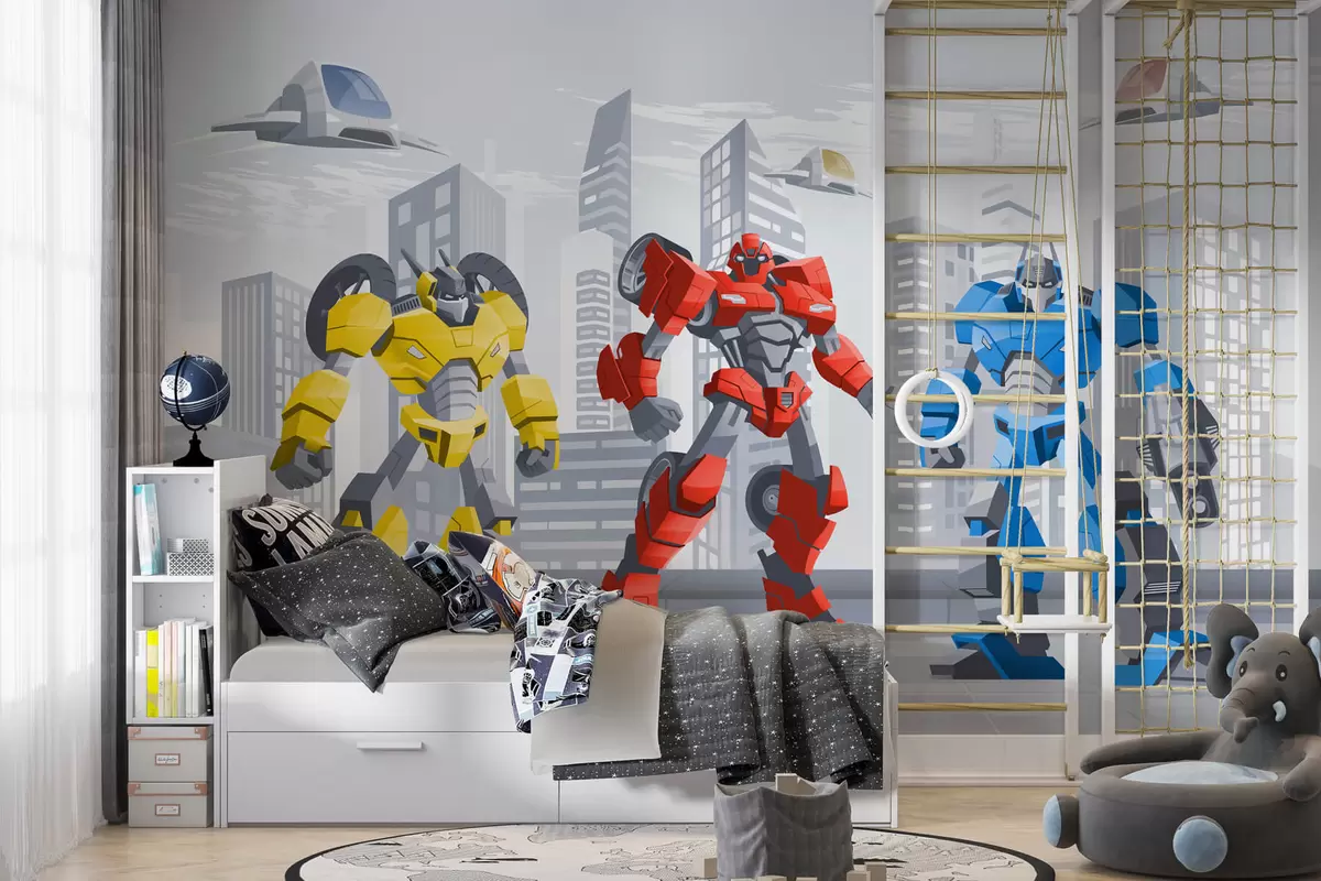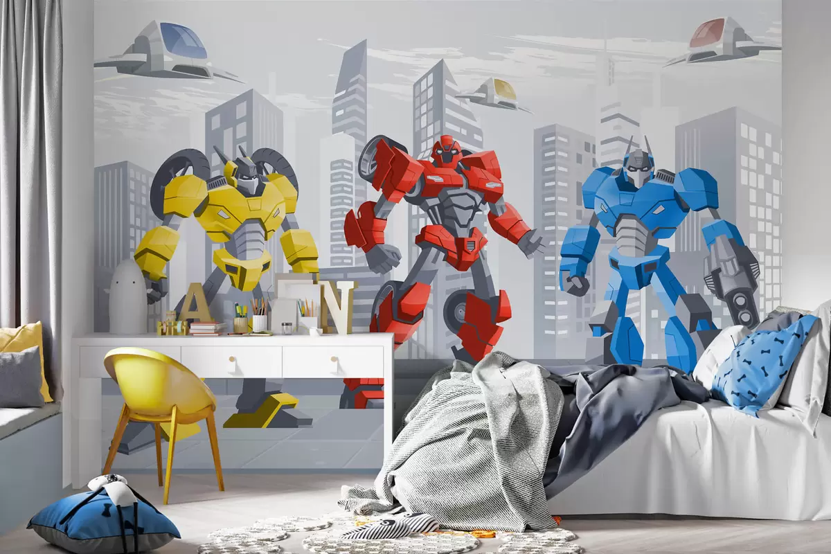 Fototapety Roboti transformátoři na pozadí černobílého města Č. w04012
