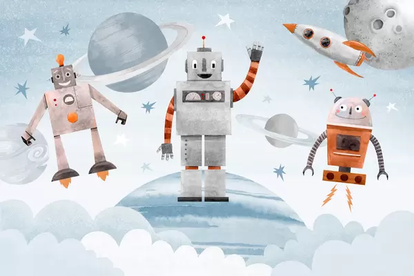 Fototapety Roboti ve vesmíru ve stylu akvarelu Č. w04016