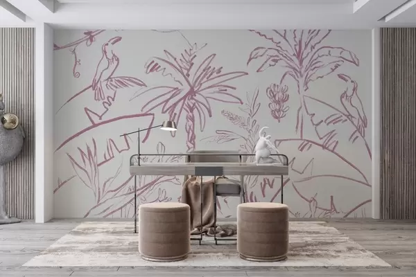 Fototapety Tropické linie v růžové barvě, tropické rostliny, banány Č. w04020v2