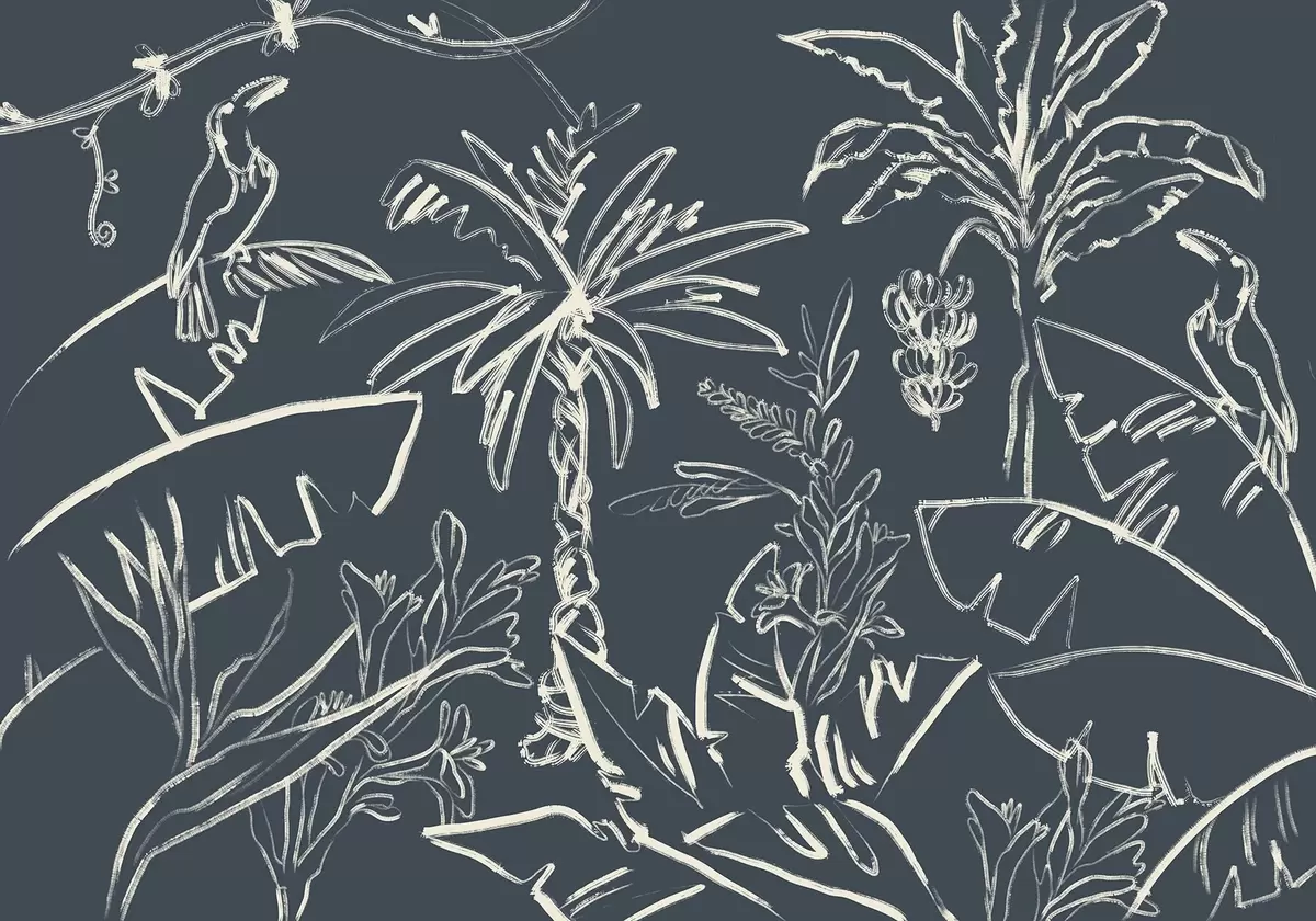Fototapety Tropický vzor na tmavě modrém pozadí, palmy, banány Č. w04020v4