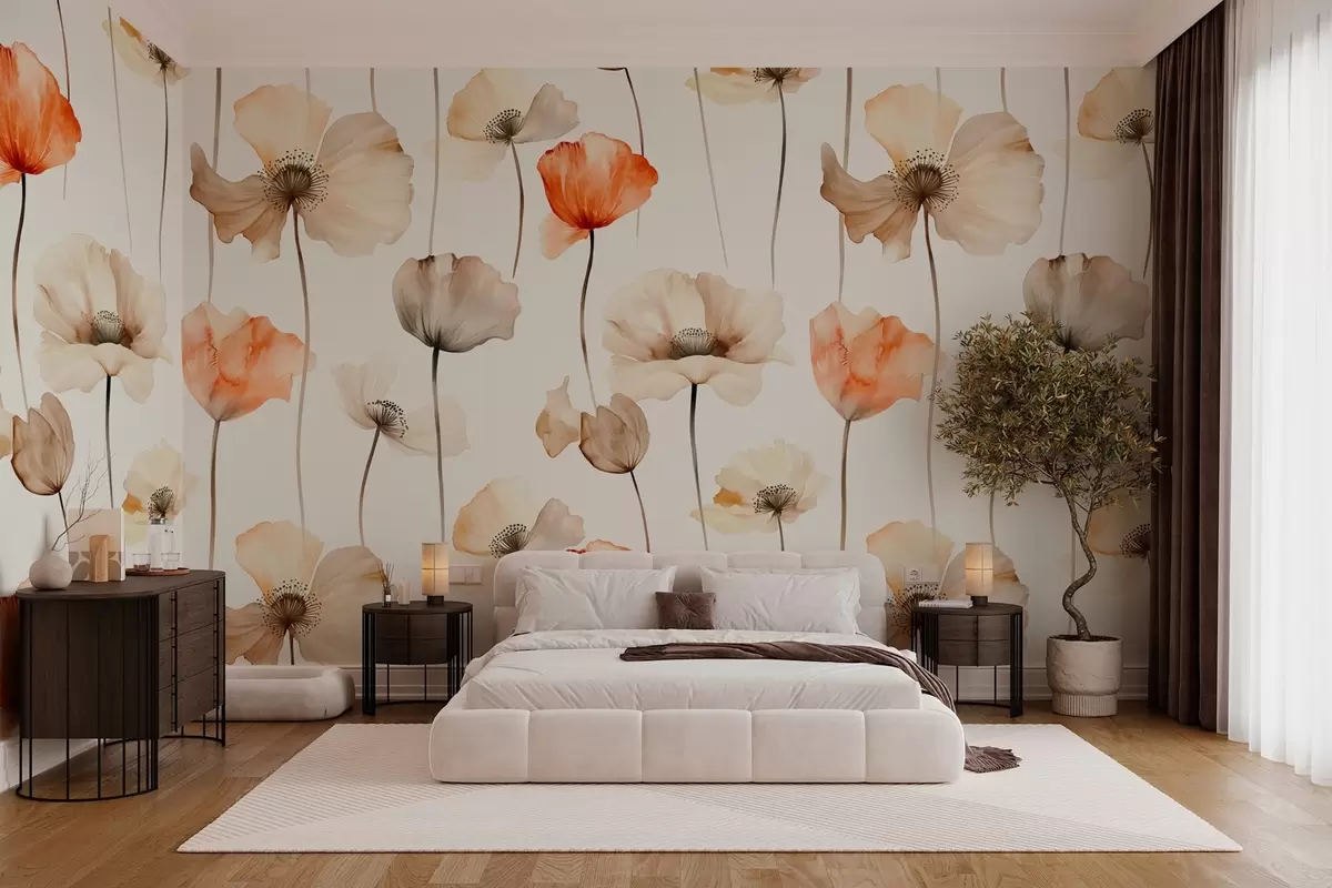 Fototapety vlnité máky v akvarelovém stylu Č. w04031