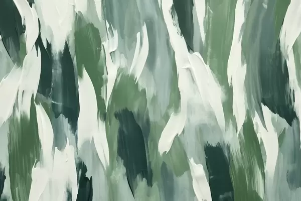 Fototapety Abstraktní textura odvážných zelených a krémových tahů štětcem, která evokuje rytmus větrem rozfoukaného listí a organický pohyb Č. w04035