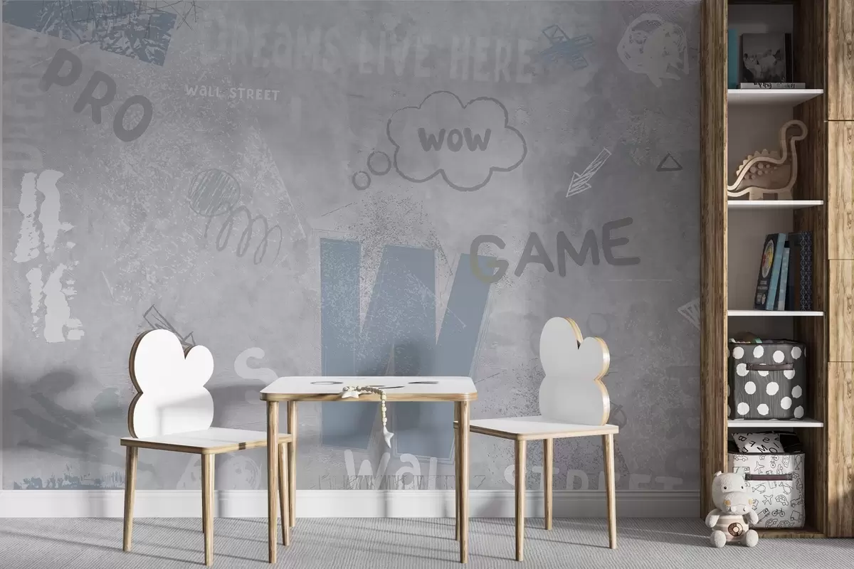 Fototapety Design ve stylu street artu s modrými nápisy na pozadí betonové zdi Č. w04056v1