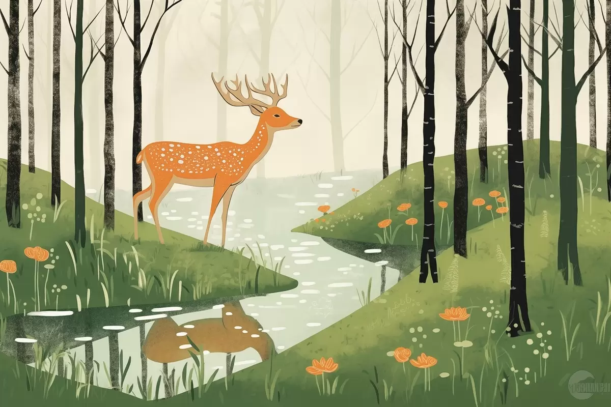 Fototapety Pohádkový les s olemeny a potokem Č. w04059