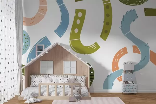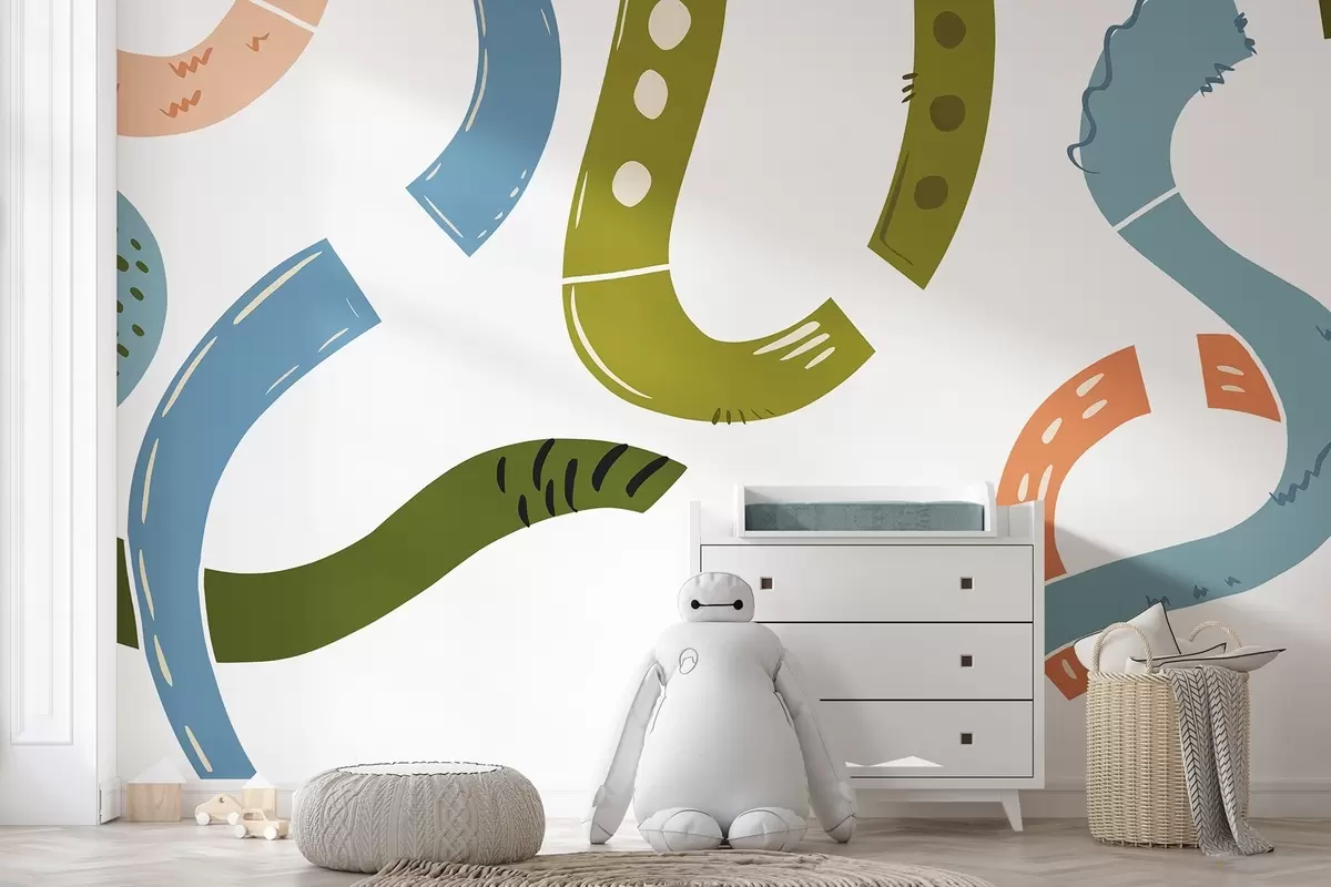 Fototapety Abstraktní kresby, mladiství, čmáranice, zelená, modrá, růžová Č. w04066v2