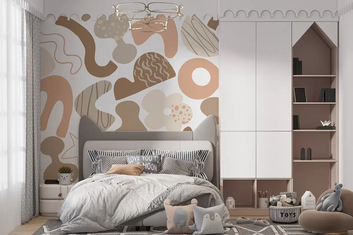 Fototapety Geometrické postavy s čmáranicemi kresba, mladistvý, béžová barevná paleta Č. w04068