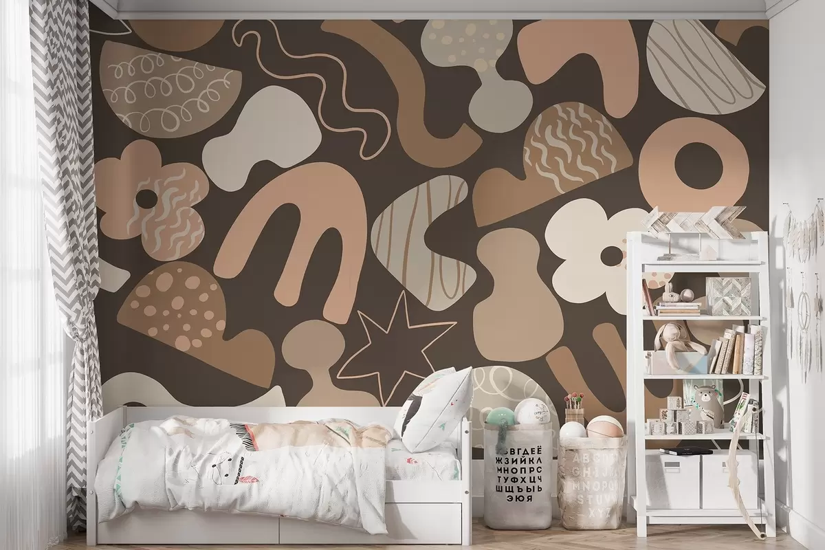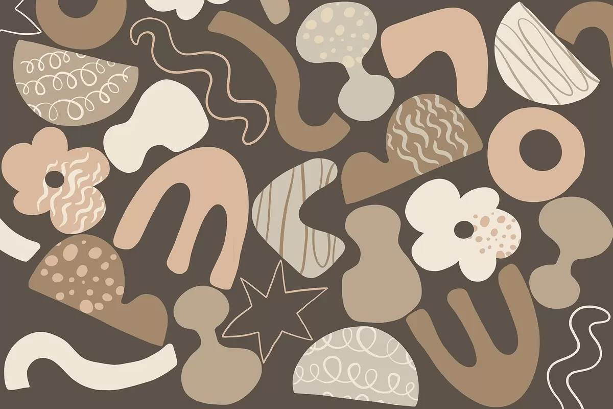 Fototapety Geometrické postavy s čmáranicemi kresba, mladistvý, tmavě béžové pozadí Č. w04068v1
