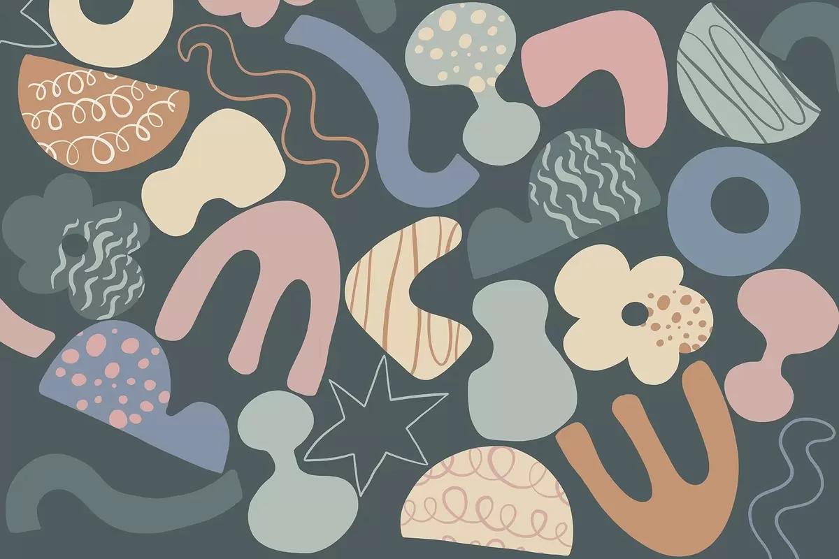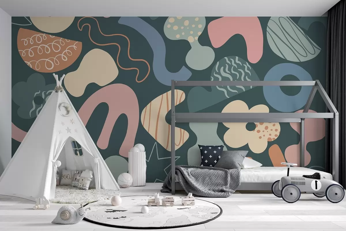 Fototapety Geometrické postavy s čmáranicemi kresba, mladistvý, tmavě zelené pozadí Č. w04068v3