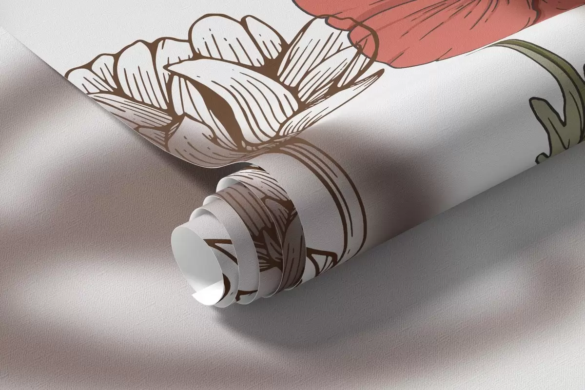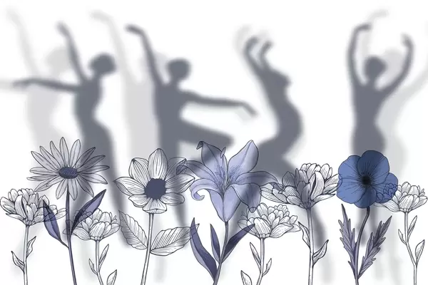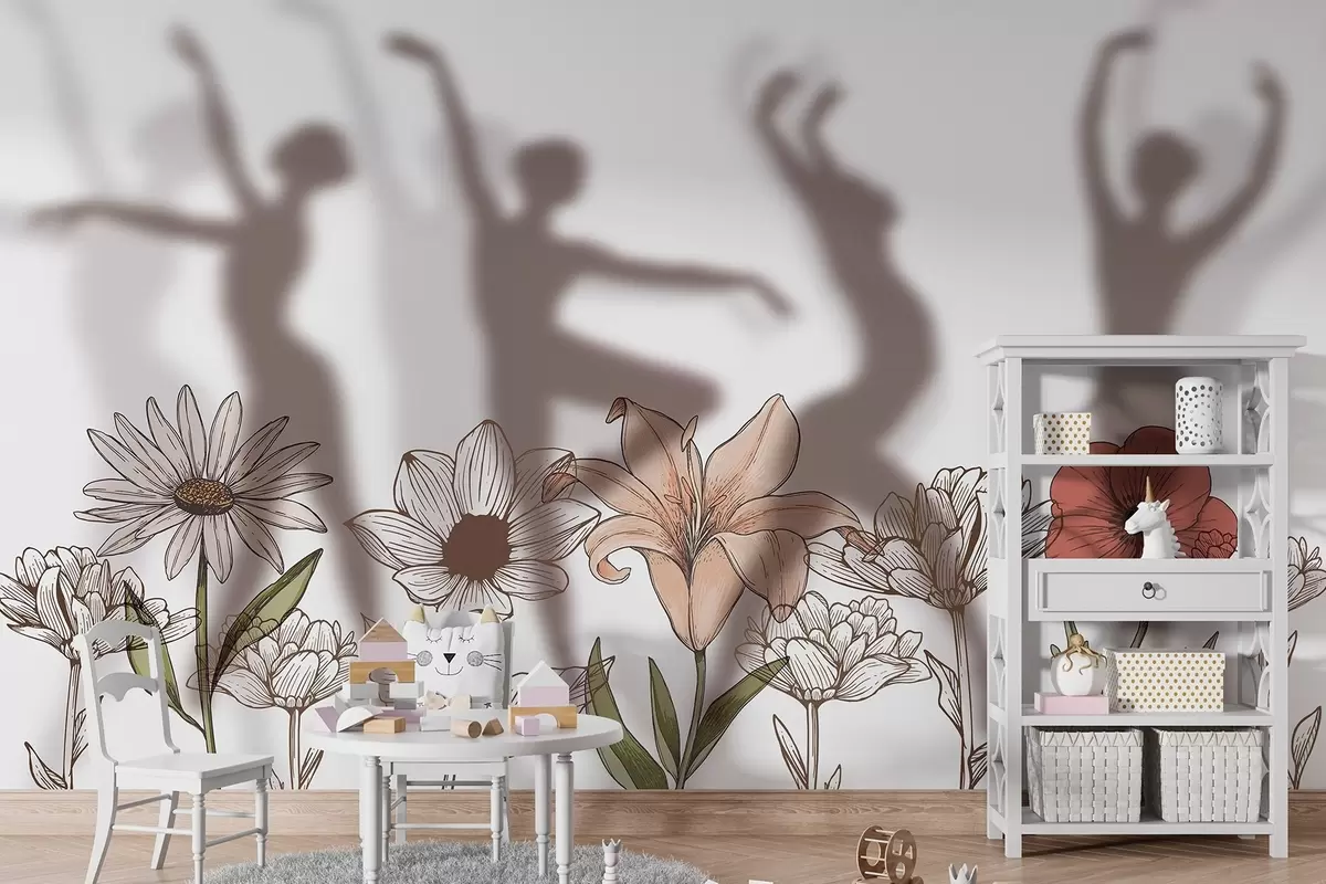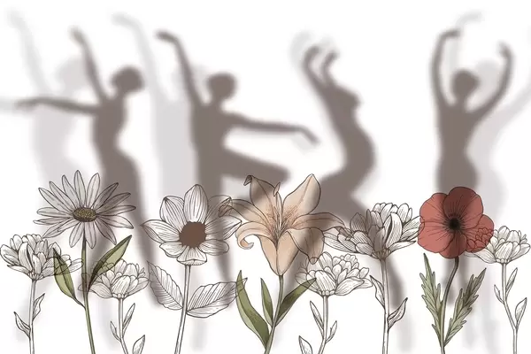 Fototapety Siluety baletek, rustikální květiny, line art, červené a béžové barvy Č. w04069