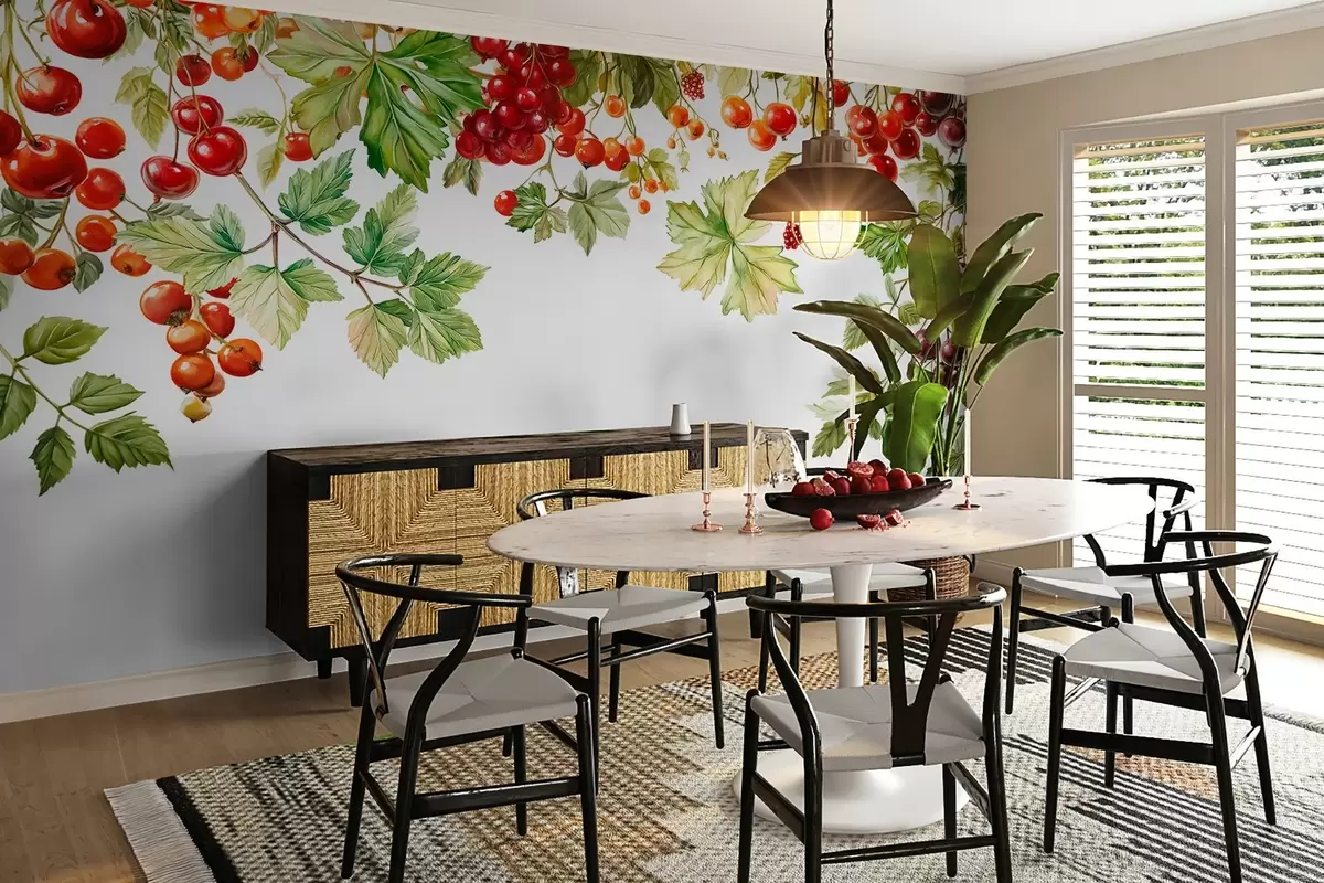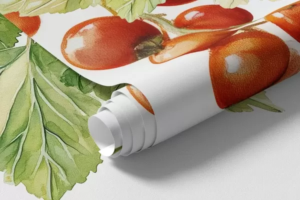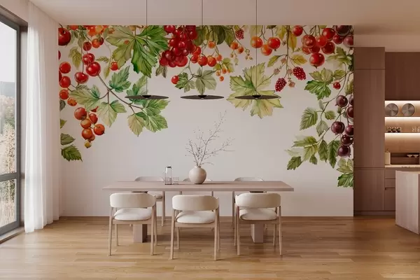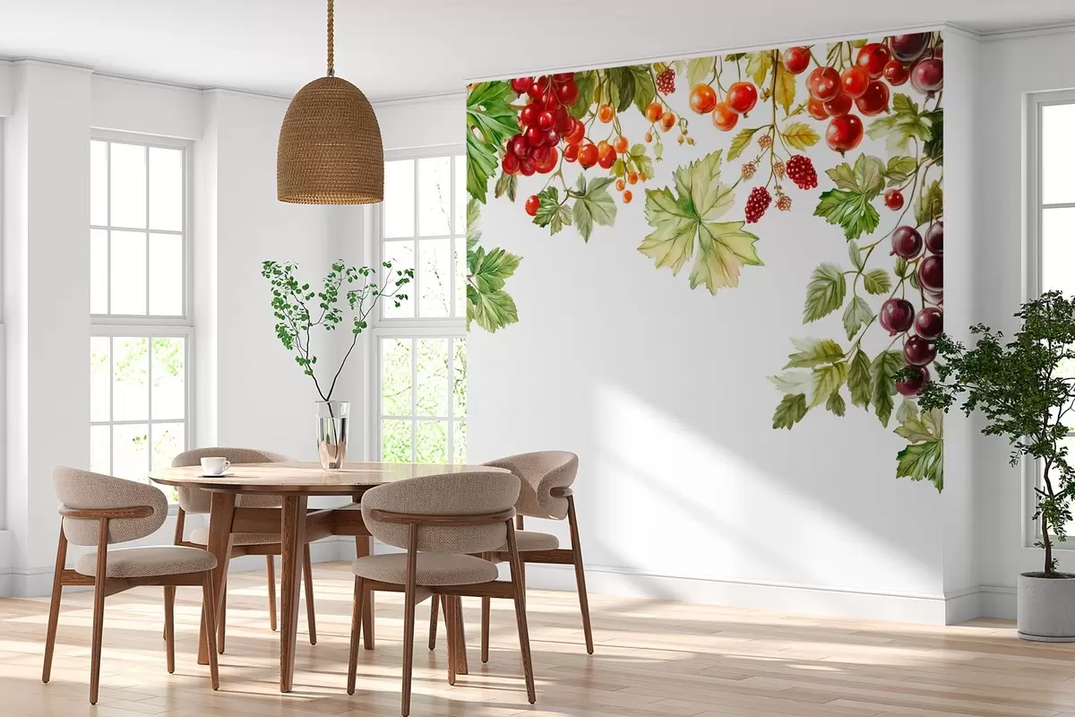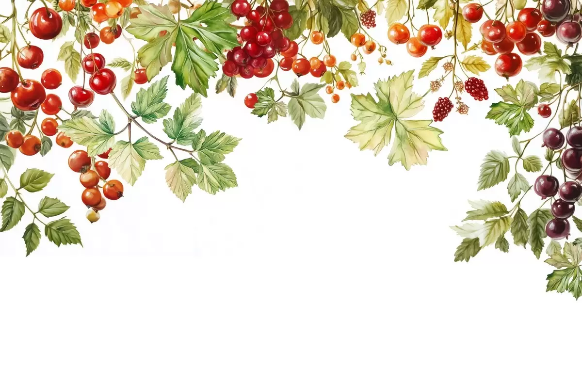Fototapety trsy rybízu visící shora v akvarelovém stylu na bílém pozadí Č. w04073