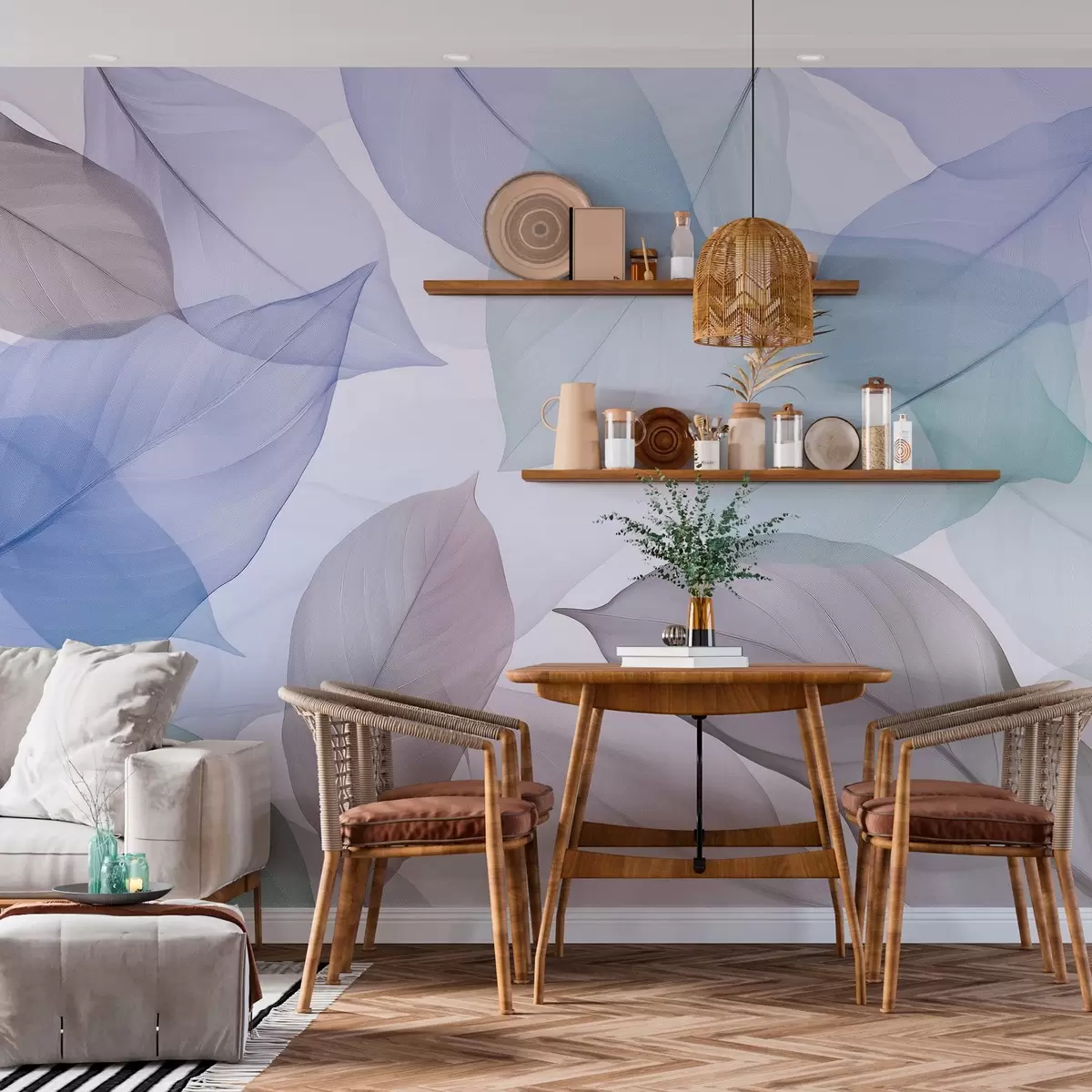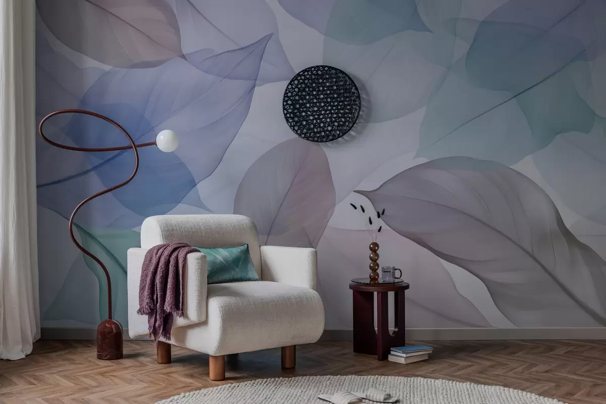 Fototapety Průsvitné listy s žilkami v modrých a hnědých odstínech Č. w04075