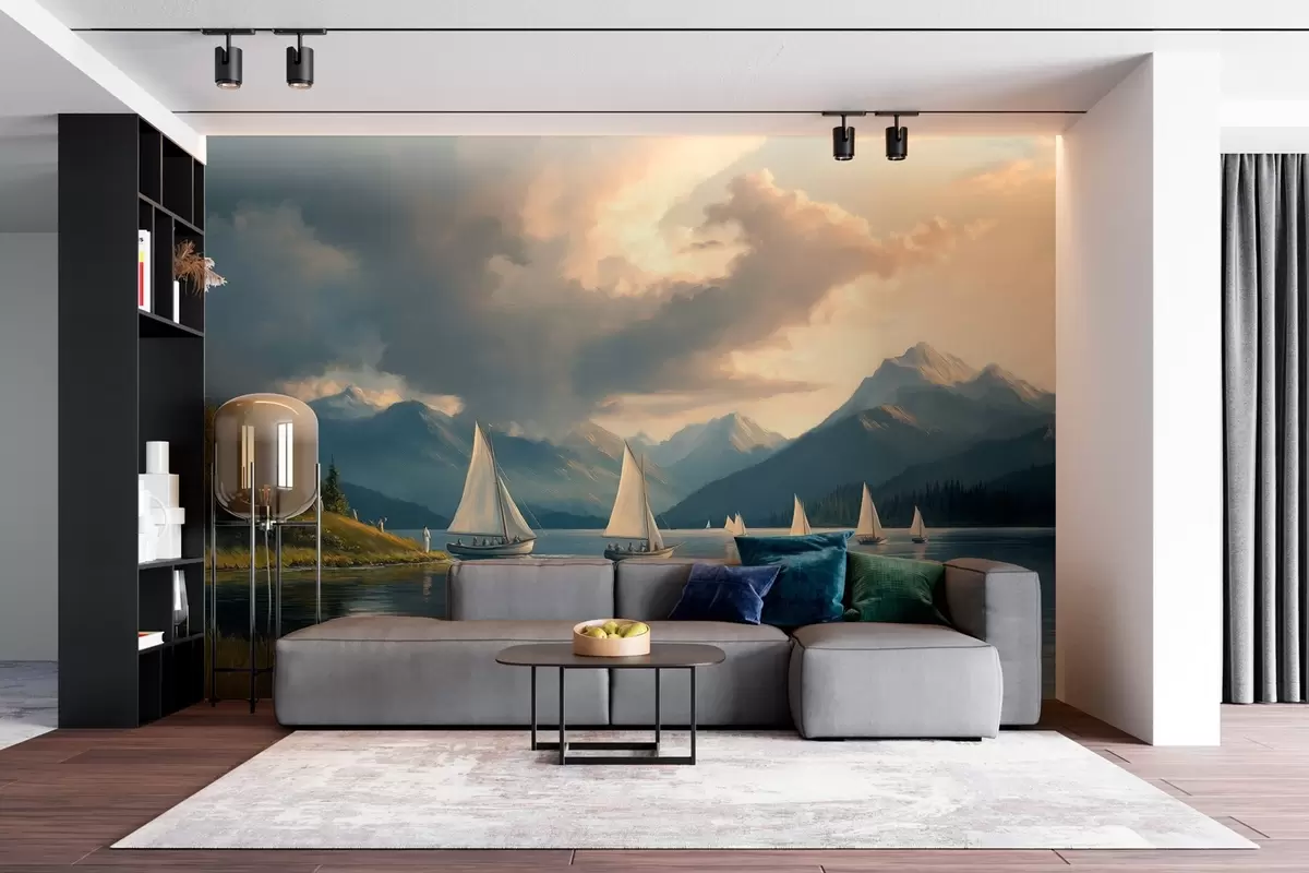 Fototapety regata na jezeře se zamračenou oblohou ve stylu olejomalby z 19. století Č. w04076