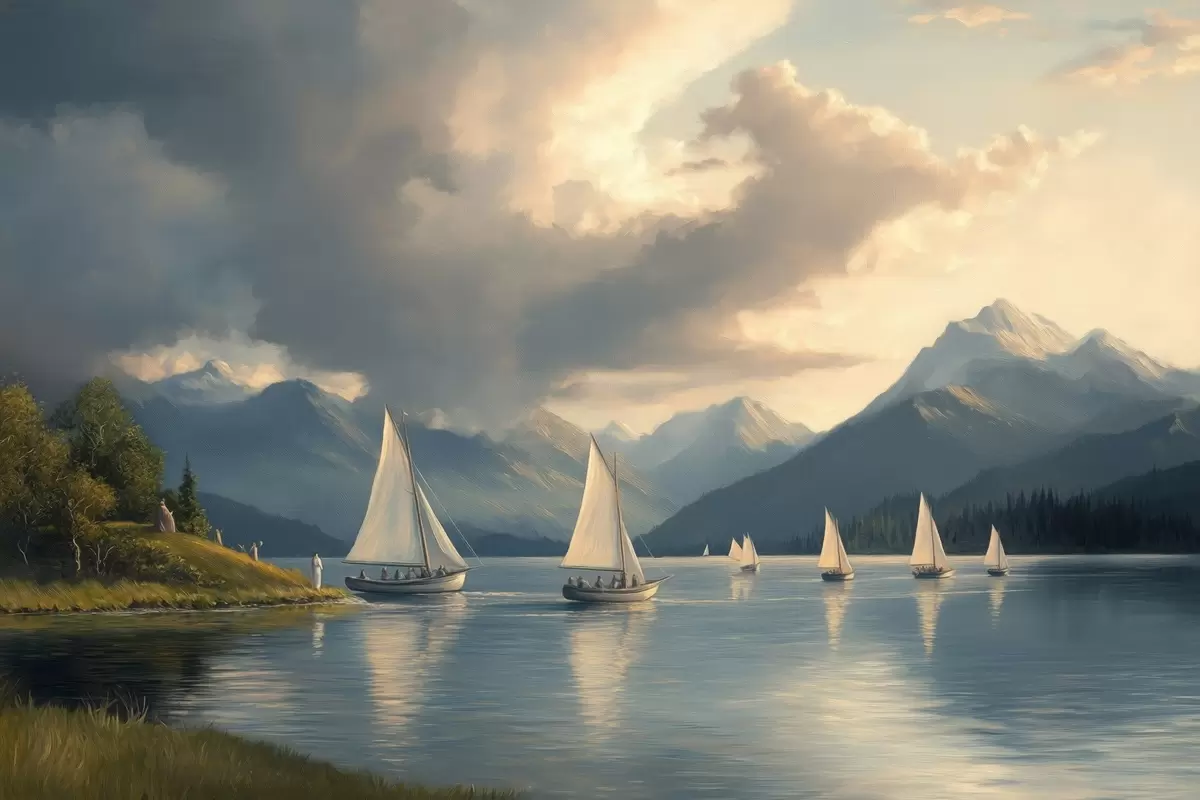 Fototapety regata na jezeře se zamračenou oblohou ve stylu olejomalby z 19. století Č. w04076