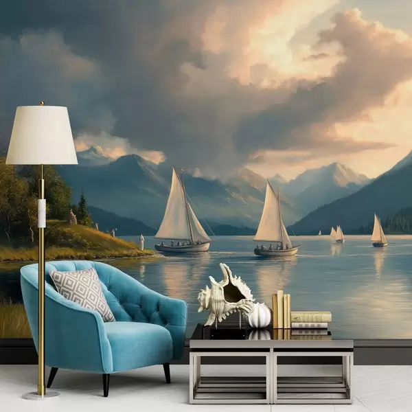 Fototapety regata na jezeře se zamračenou oblohou ve stylu olejomalby z 19. století Č. w04076