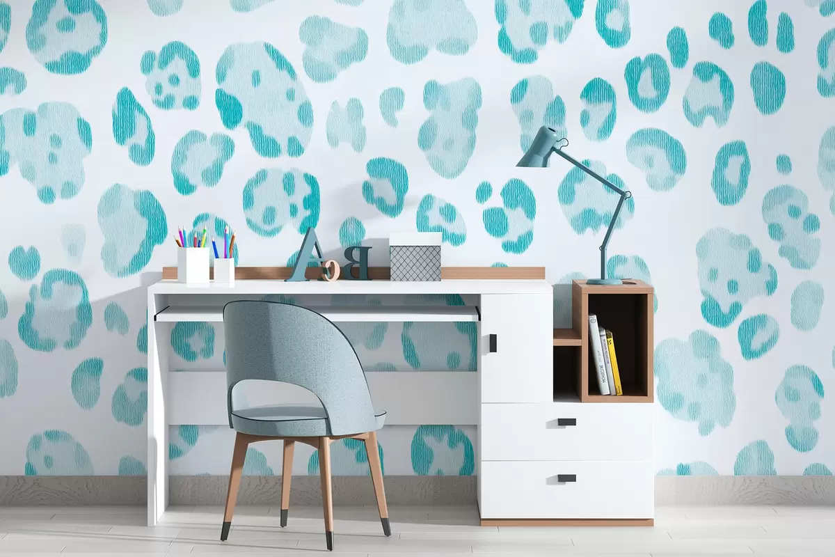 Fototapety Leopardí potisk, vlněná textura, modrá barva Č. w04112