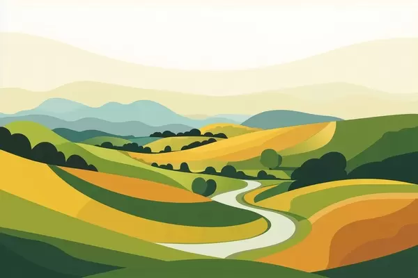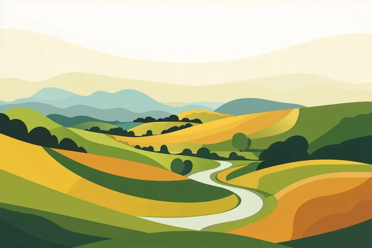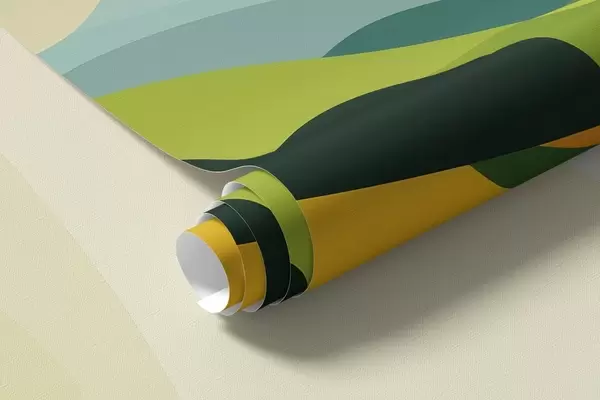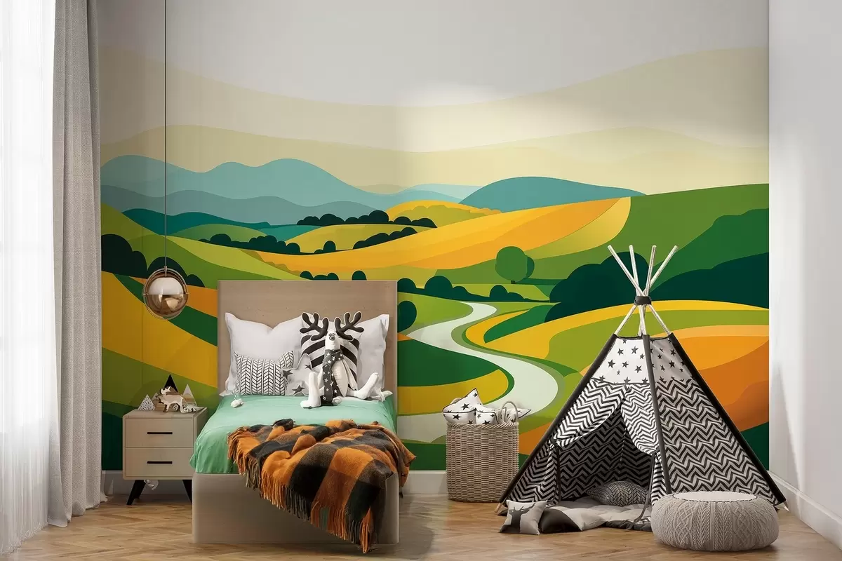 Fototapety Abstraktní krajina s kopci a stromy, živé barvy Č. w04116