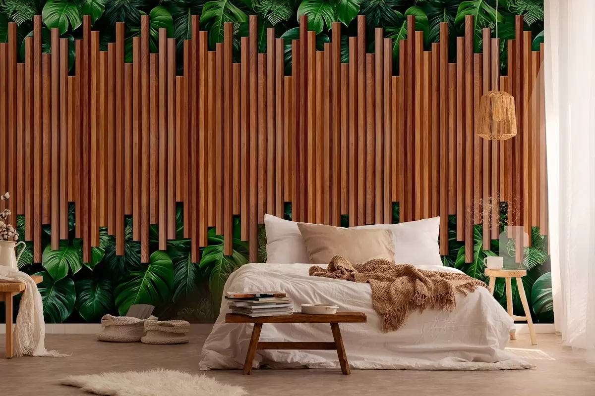 Fototapety Imitace dřevěných panelů a zelené stěny Č. w04138