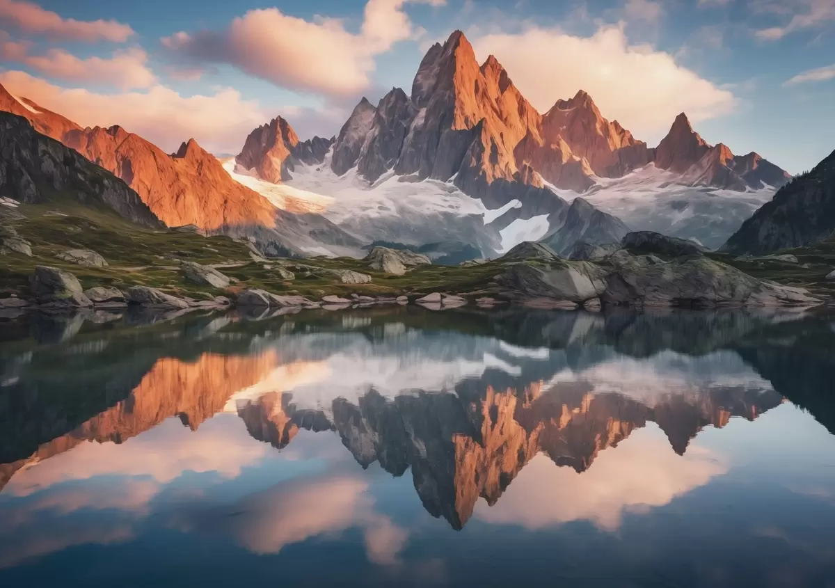 Fototapety Hory za svítání, odraz ve vodě, realistická krajina Č. w04150