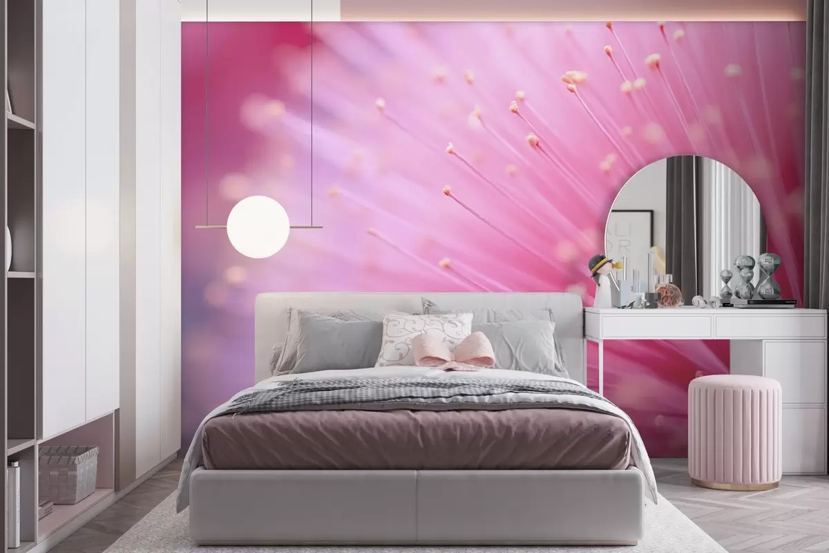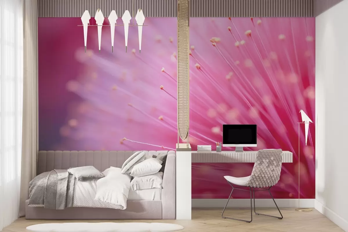 Fototapety Tyčinky růžových květů v makro, jemná abstrakce Č. w04154