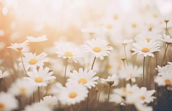Fototapety Divoké sedmikrásky na světlém pozadí s efektem měkkého zaostření Č. w04161