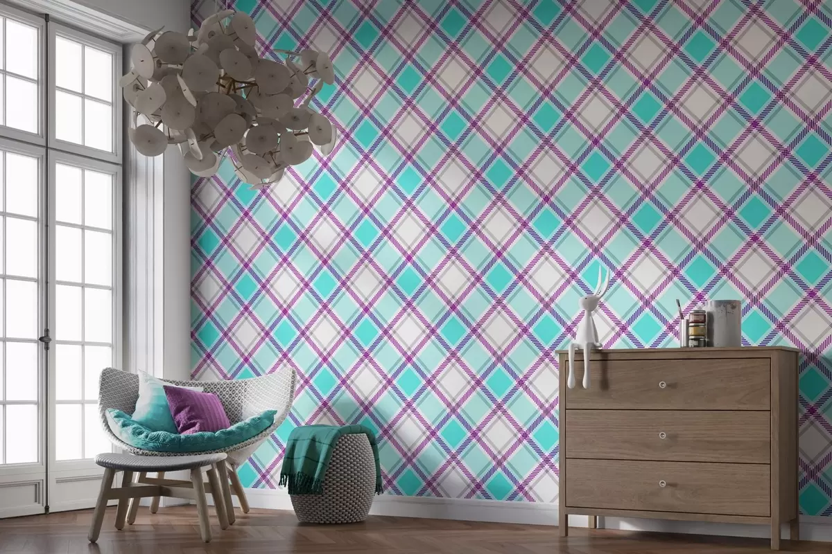 Fototapety kostkovaný vzor v modrých tónech Č. w04167