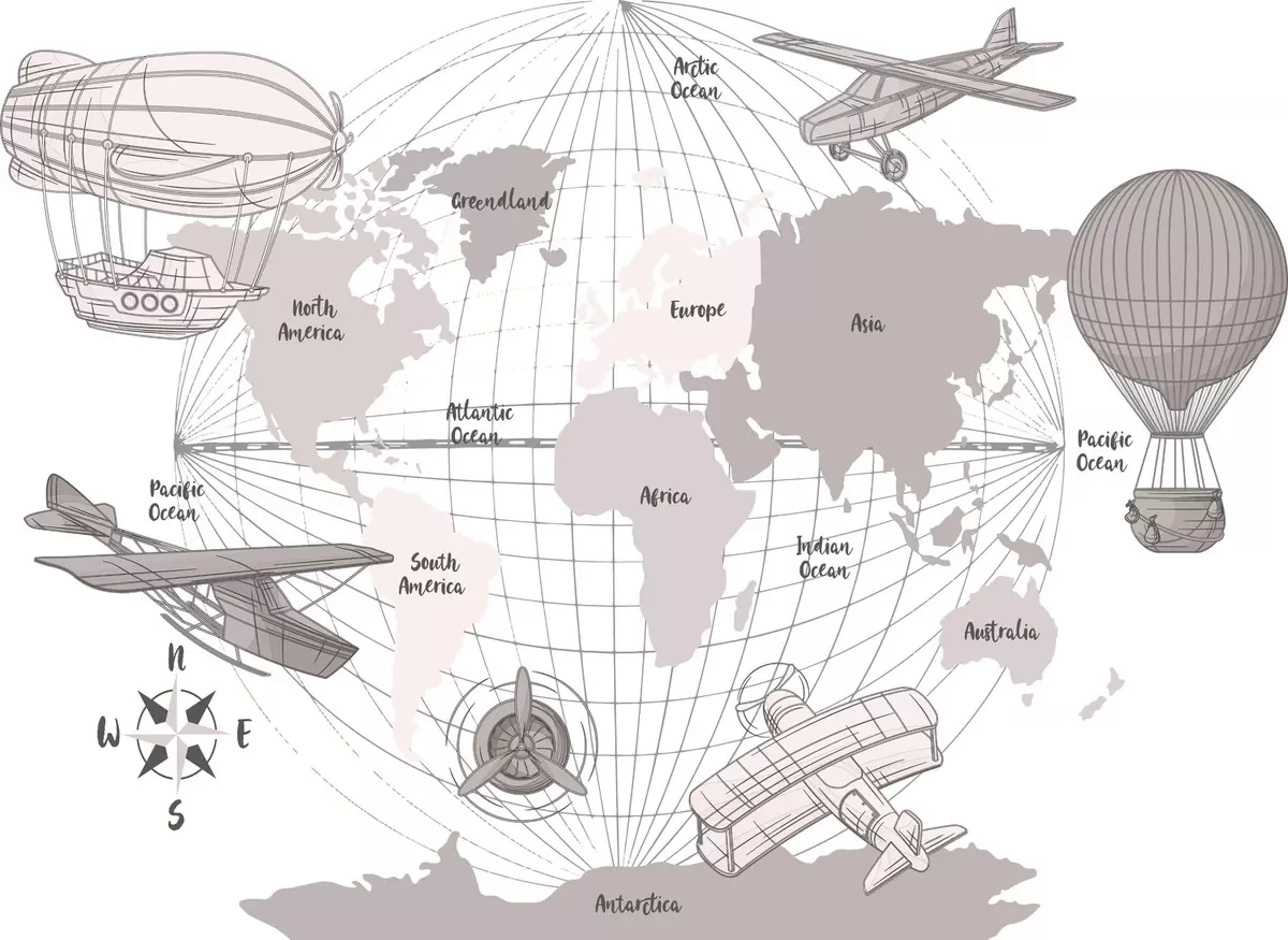 Fototapety Mapa světa s letadly Č. w04177