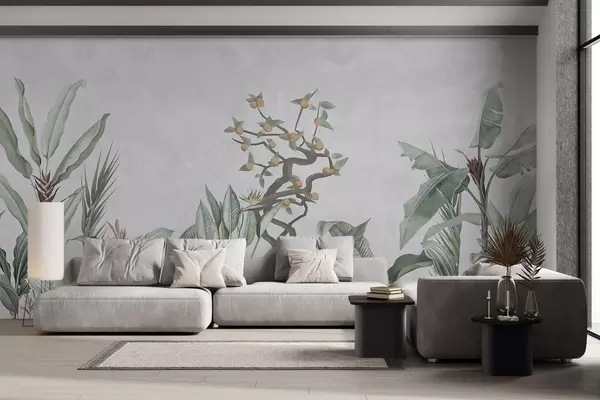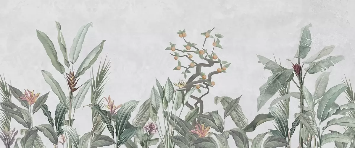 Fototapety Tropické rostliny s oranžovým stromem na světlém pozadí Č. w04201
