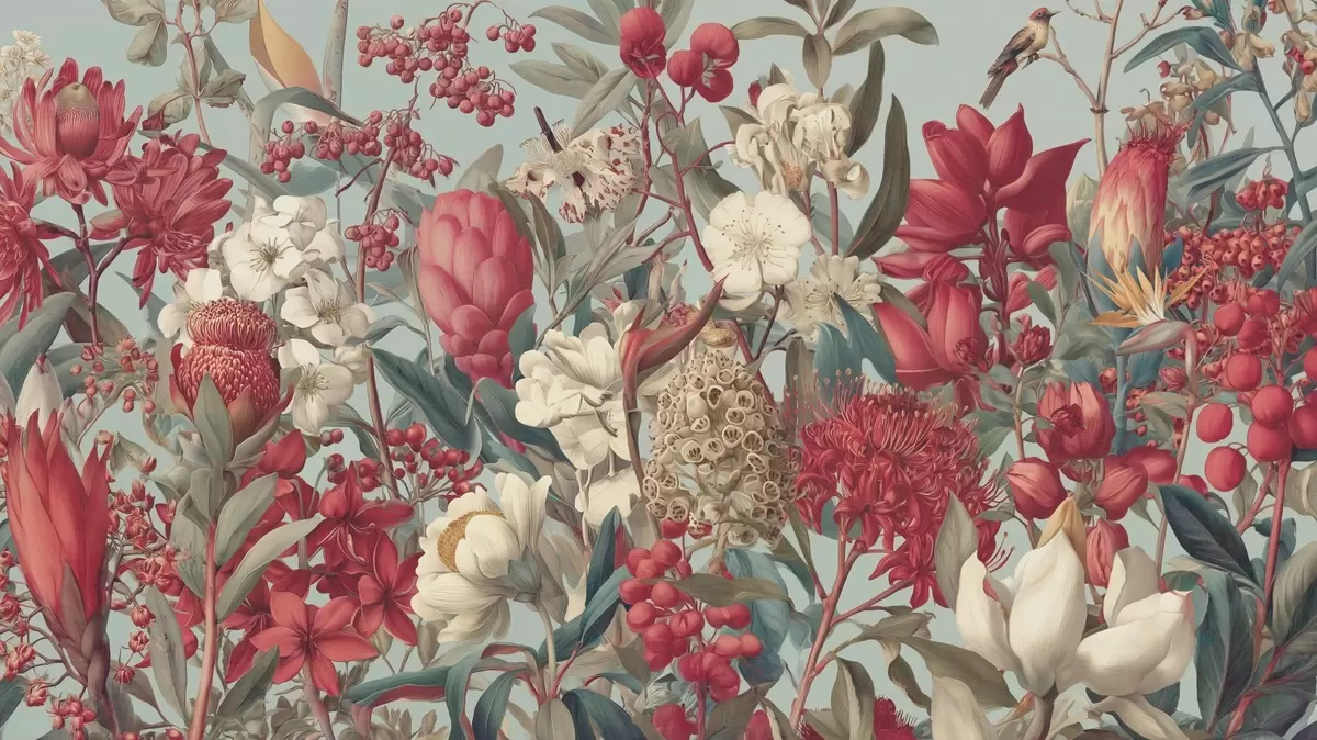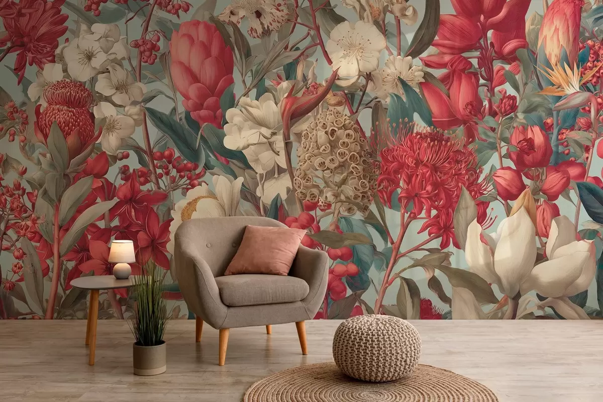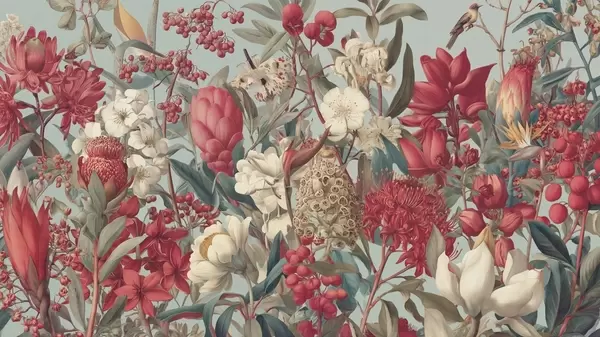 Fototapety texturované tropické květiny na modrém pozadí Č. w04209