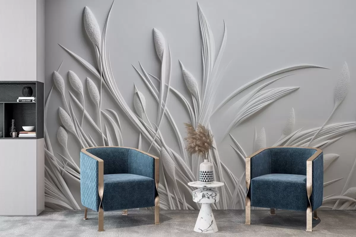 Fototapety Basreliéf s jemnými listy a pampami Č. w04247