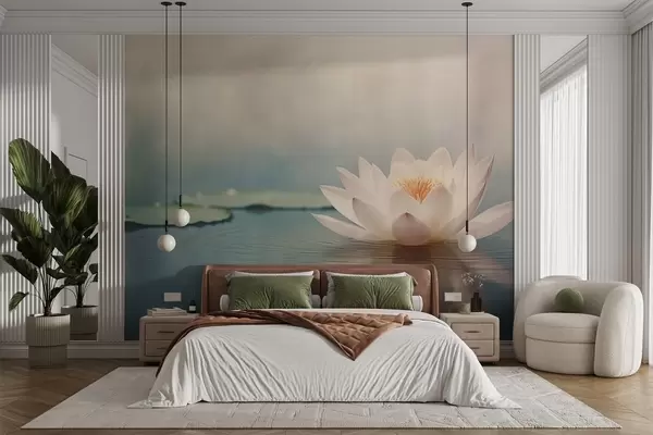Fototapety Bílý lotosový květ na vodě Č. w04272