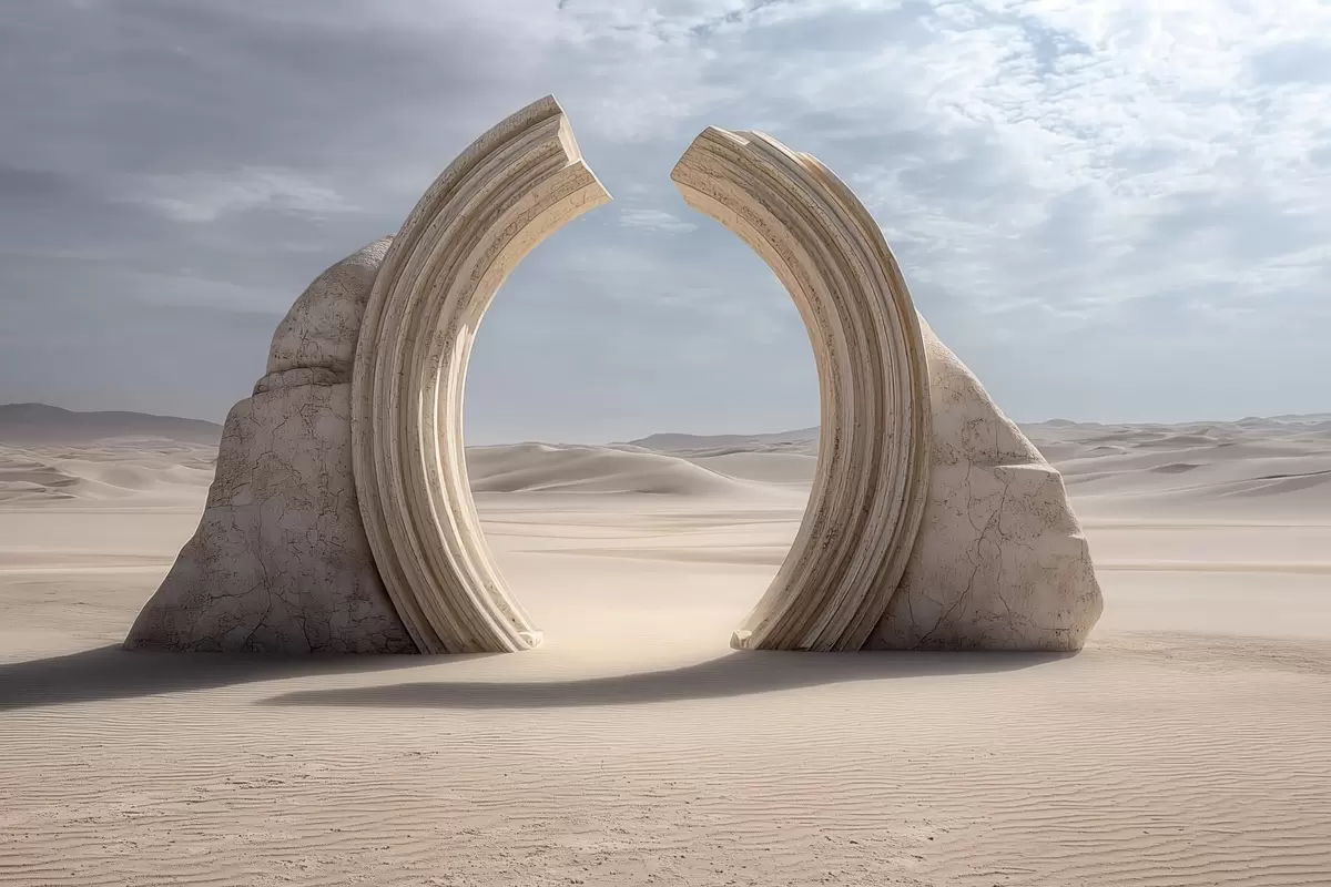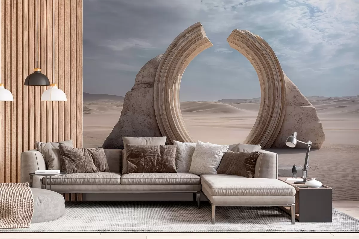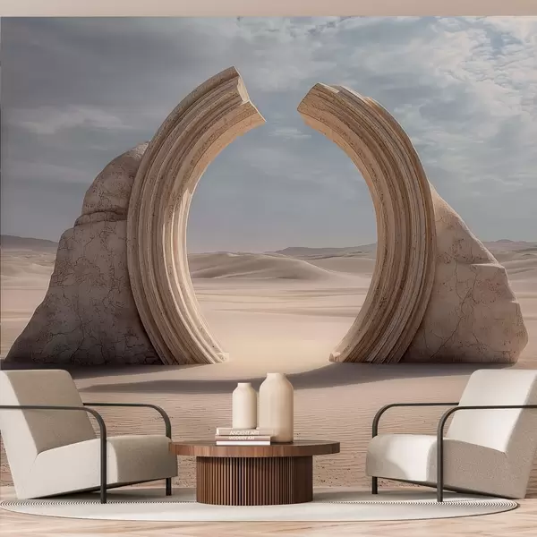 Fototapety surrealistická pouštní krajina s velkým architektonickým obloukem Č. w04284