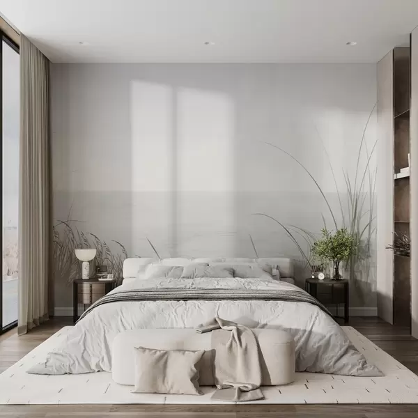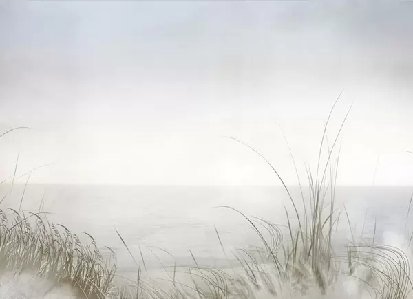 Fototapety Mlžné pobřeží s jemnými travinami v popředí Č. w04339