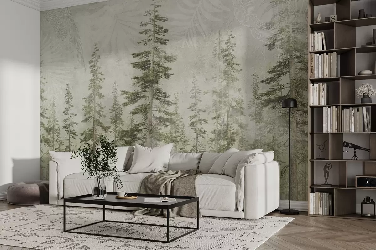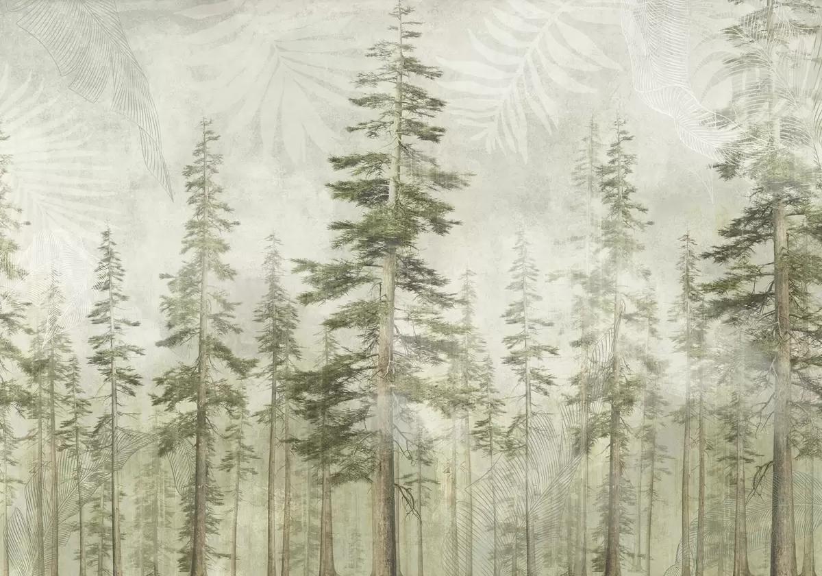 Fototapety Borový les s vintage strukturou papíru a jemnými vzory Č. w04342