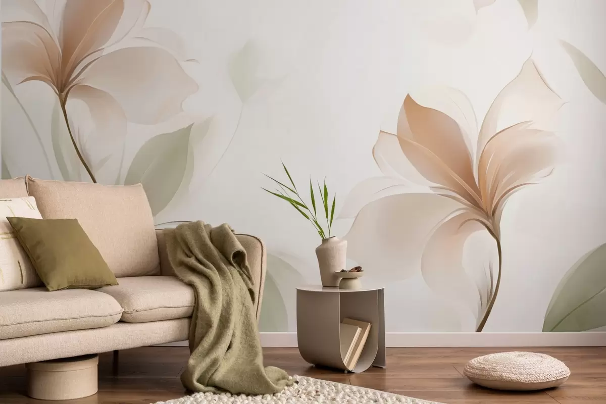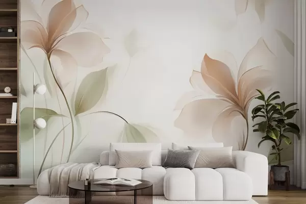 Fototapety Průhledné květy v teplých béžových a růžových tónech Č. w04397