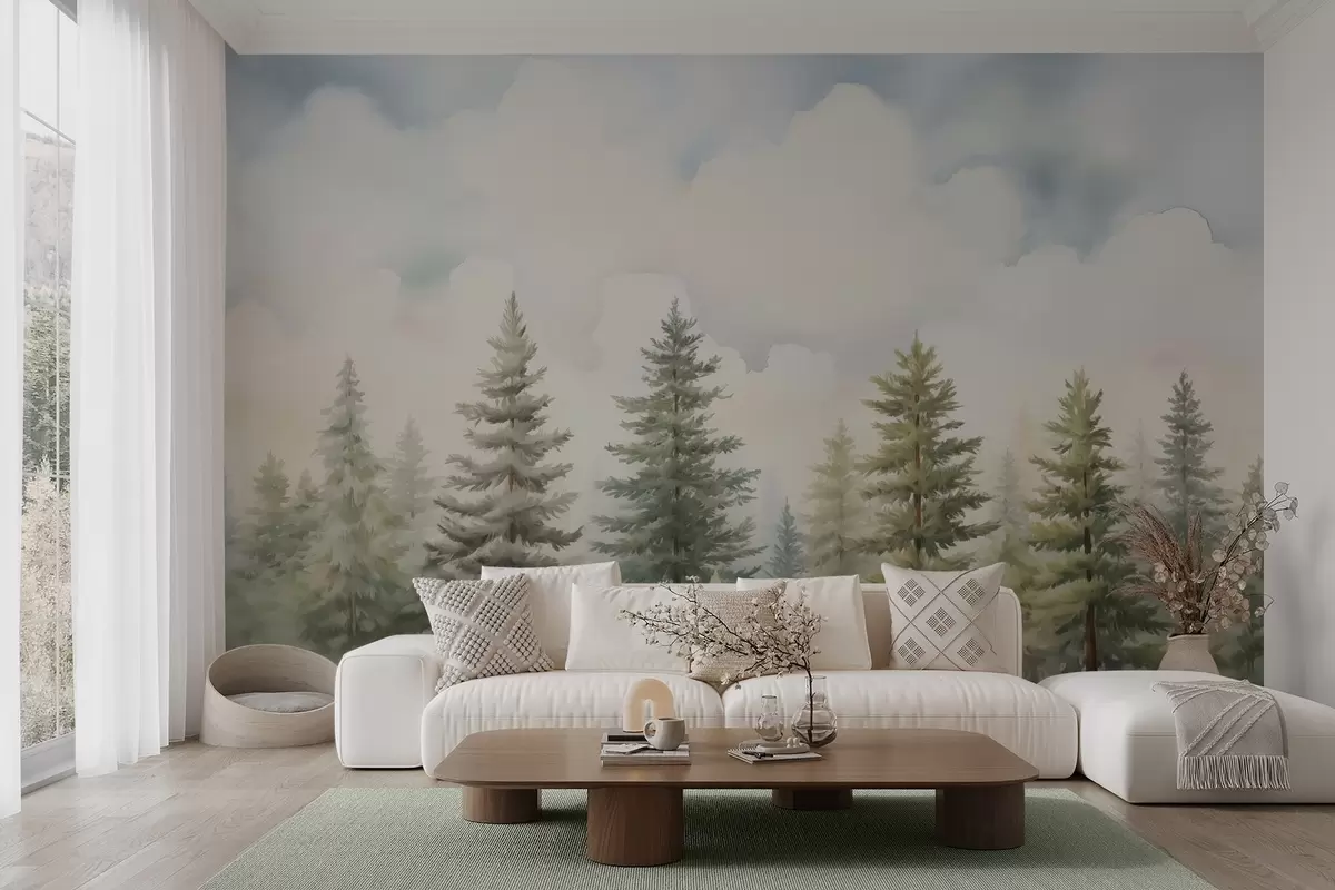 Fototapety Malba imitující jehličnatý les Č. w04414