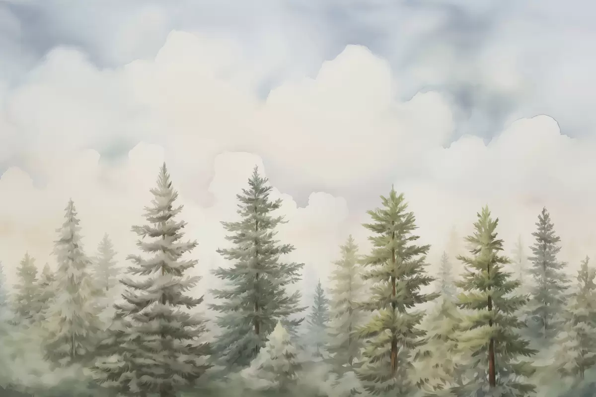 Fototapety Malba imitující jehličnatý les Č. w04414