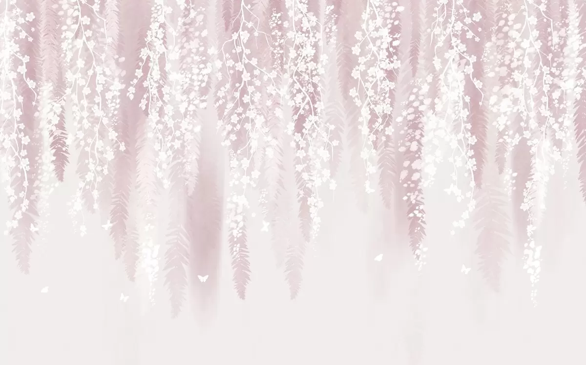 Fototapety Růžová verze větví s bílými květy Č. w04417v1