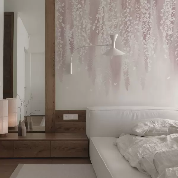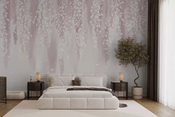 Fototapety Růžová verze větví s bílými květy Č. w04417v1
