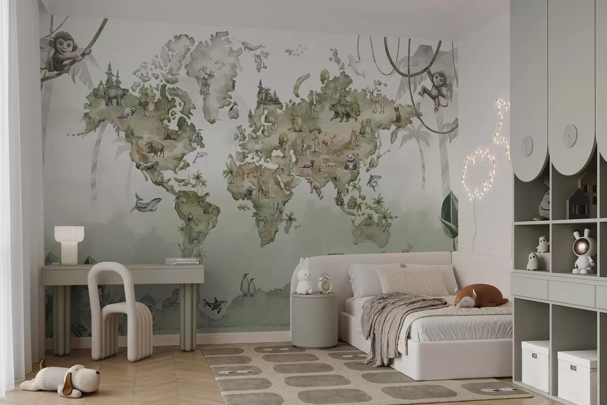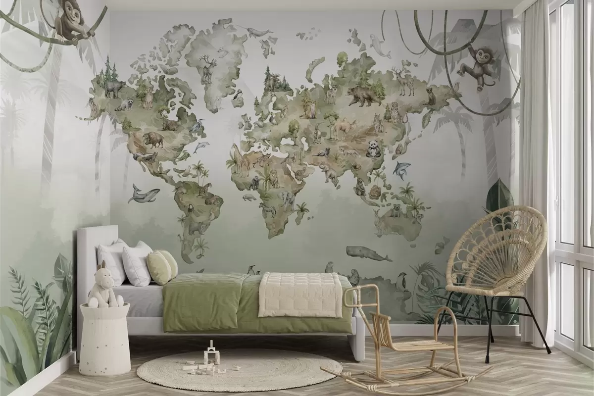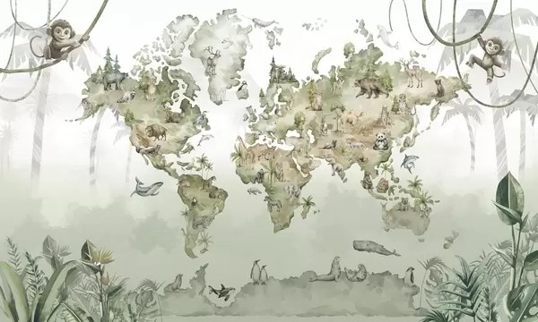 Fototapety Ilustrovaná mapa světa se zvířaty a džunglí Č. w04418v1