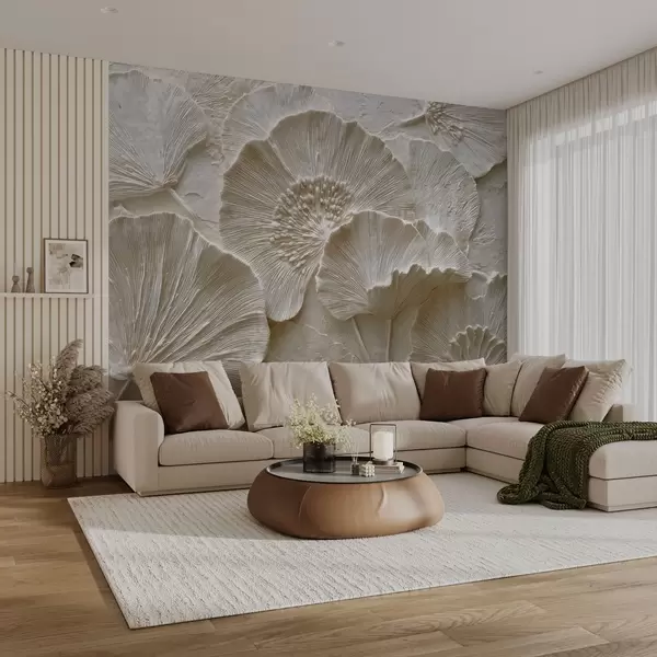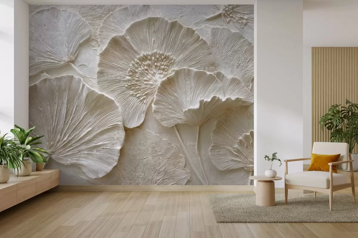 Fototapety Objemné listy ginkga v lehkém reliéfním stylu Č. w04444