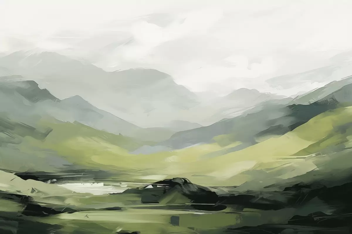 Fototapety Abstraktní horská krajina v odstínech zelené barvy Č. w04447