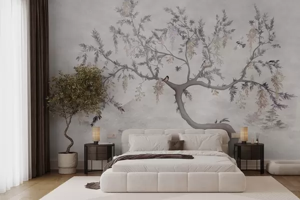 Fototapety Větev stromu s ptáky v orientálním stylu Č. w04456