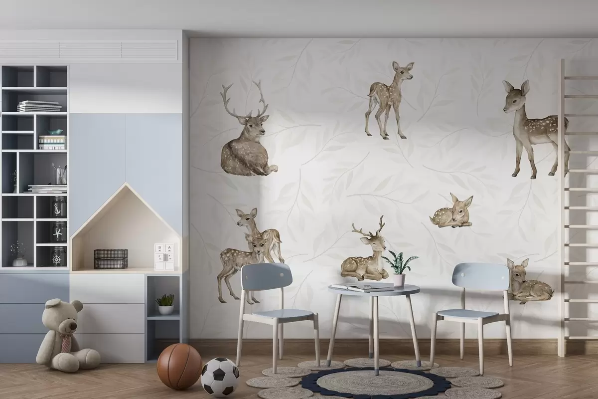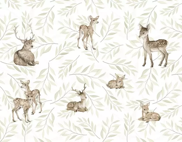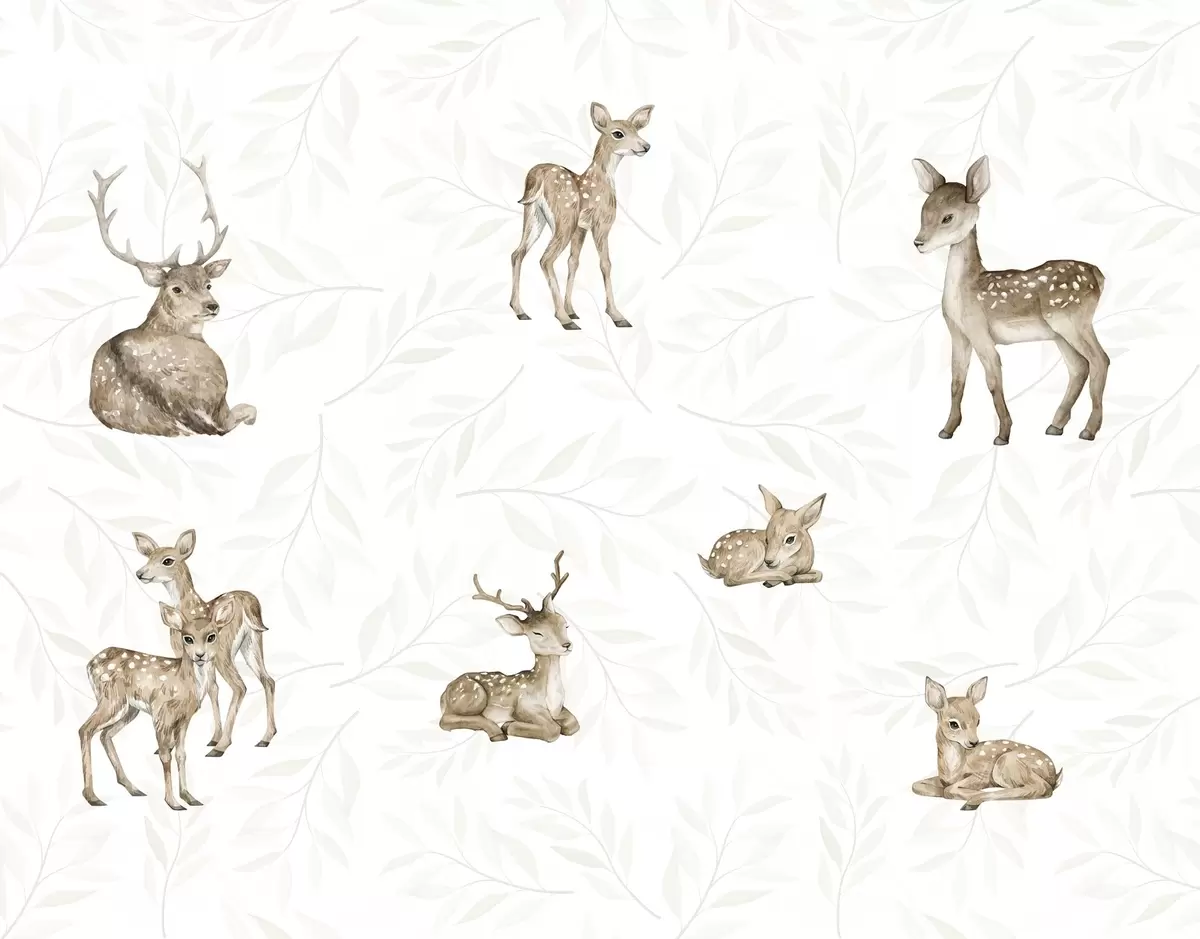 Fototapety Roztomilé srnky na světlém pozadí s větvičkami Č. w04461